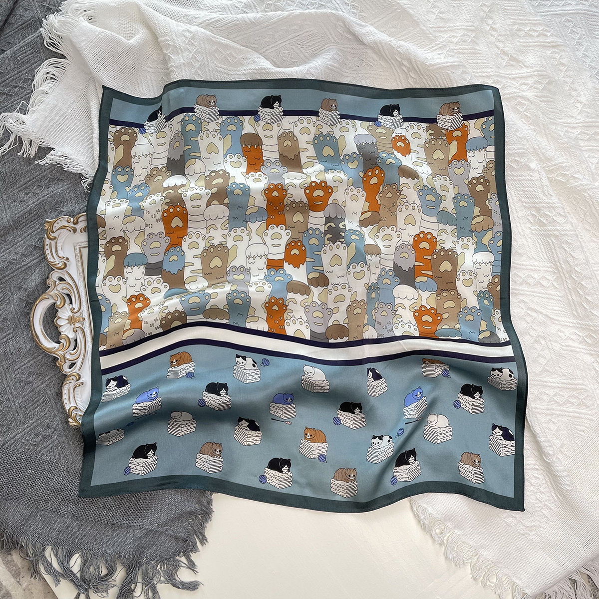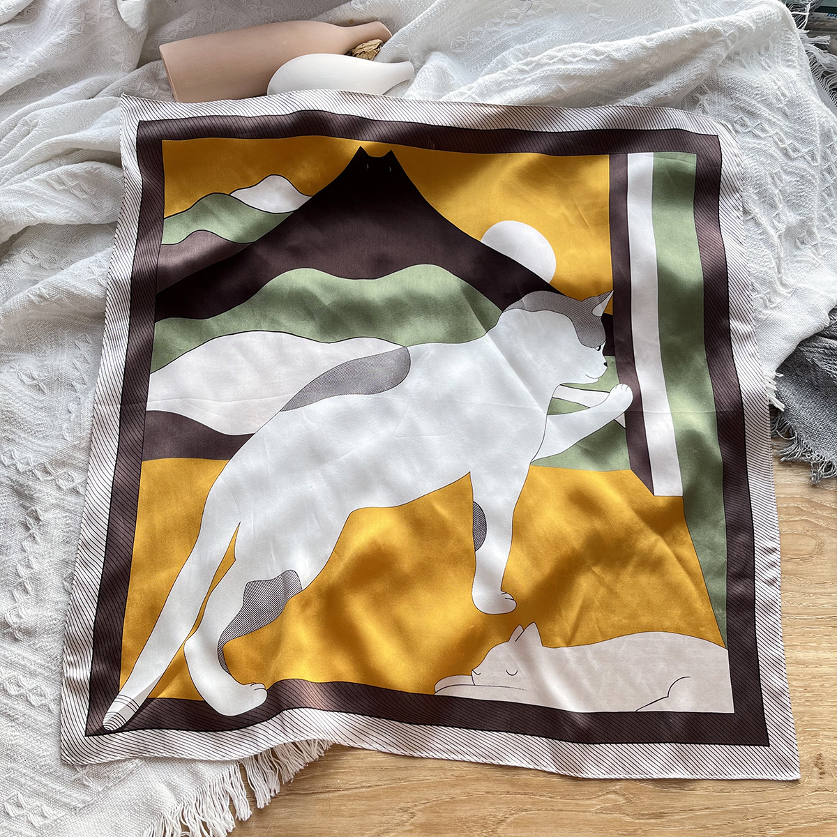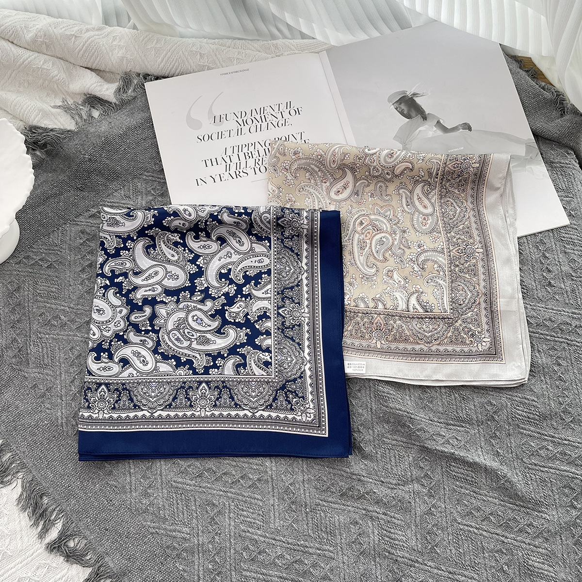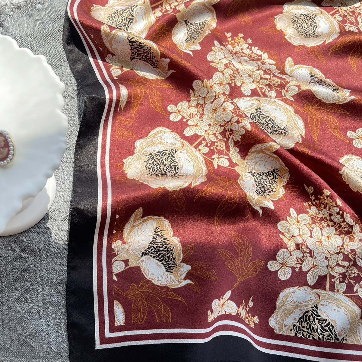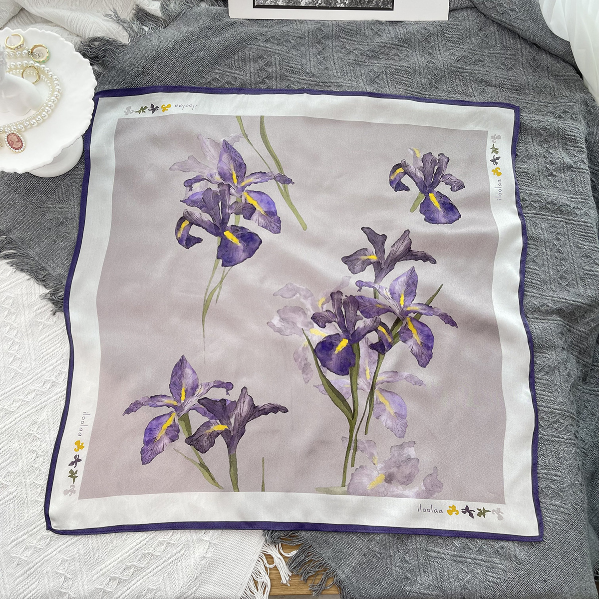 100% 실크 스카프 봄 새로운 검은 누에 실크 53cm 작은 광장 스카프 고급 감각 흰색 스카프스토어 가기