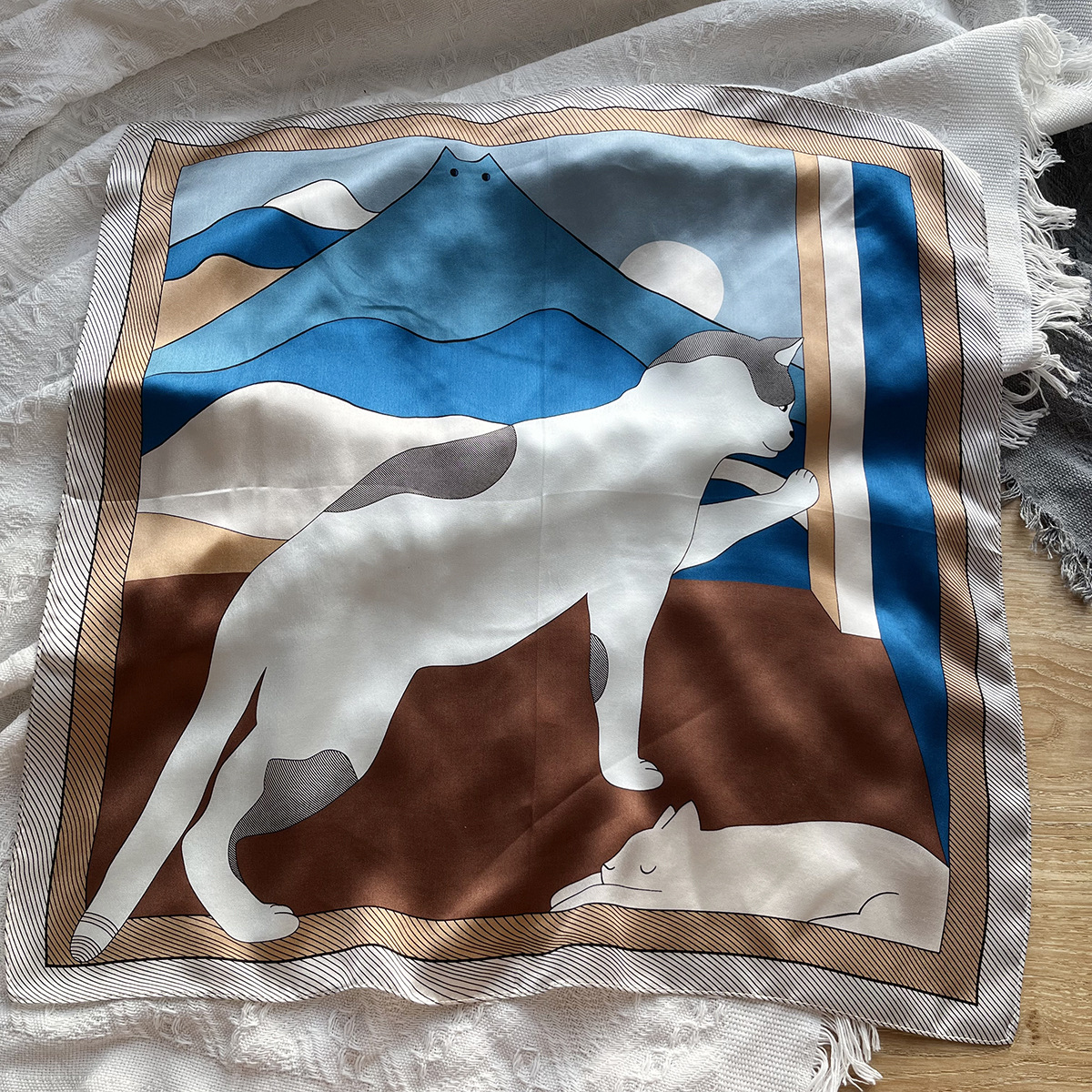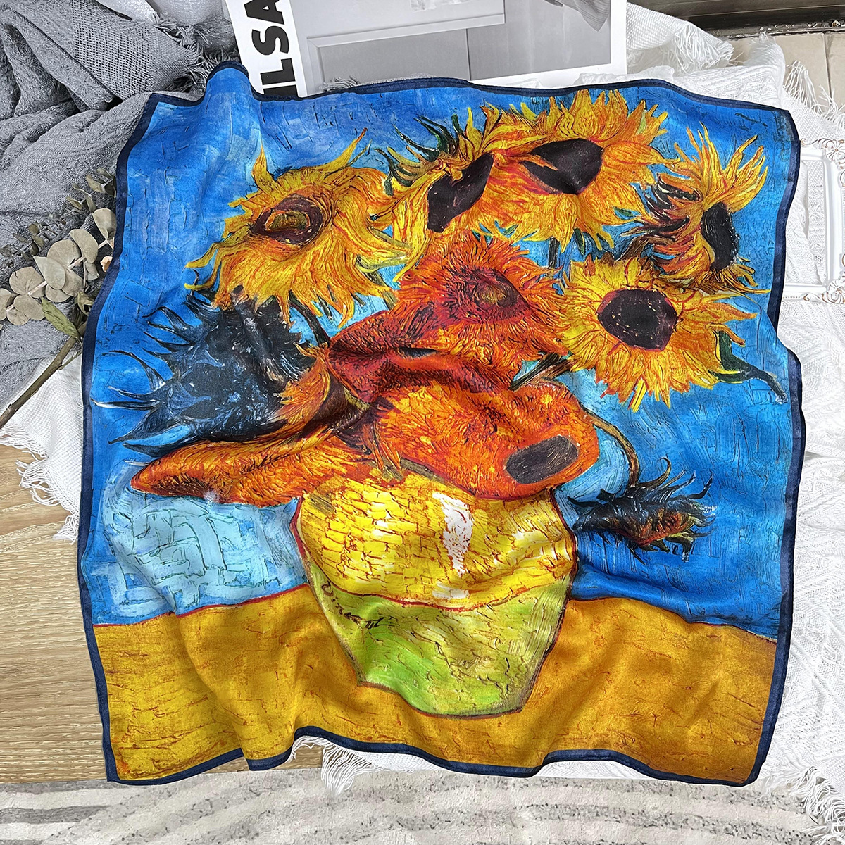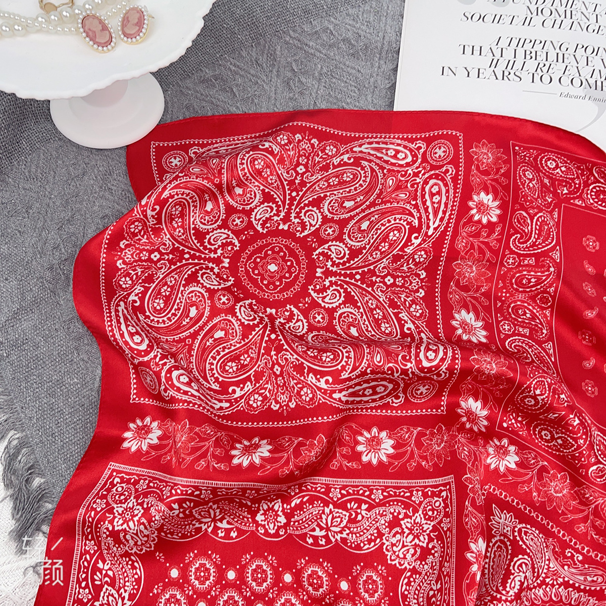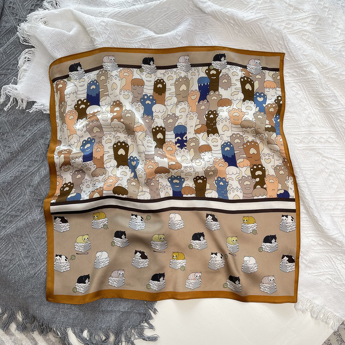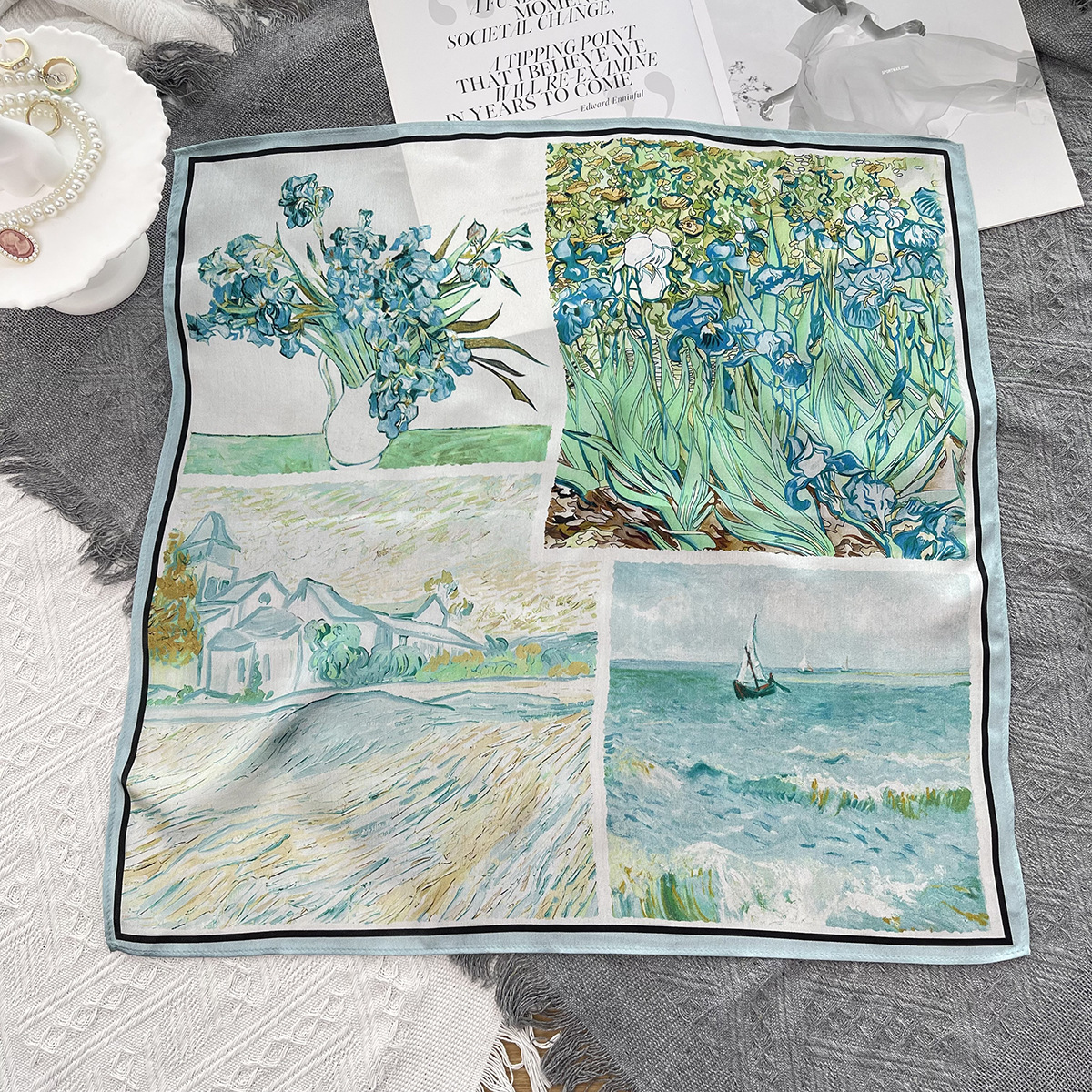 100% 실크 스카프 봄 새로운 검은 누에 실크 53cm 작은 광장 스카프 고급 감각 흰색 스카프스토어 가기