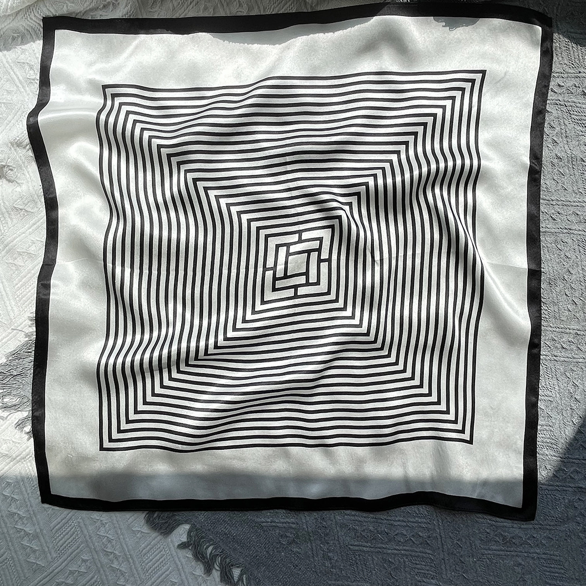 100% 실크 스카프 봄 새로운 검은 누에 실크 53cm 작은 광장 스카프 고급 감각 흰색 스카프