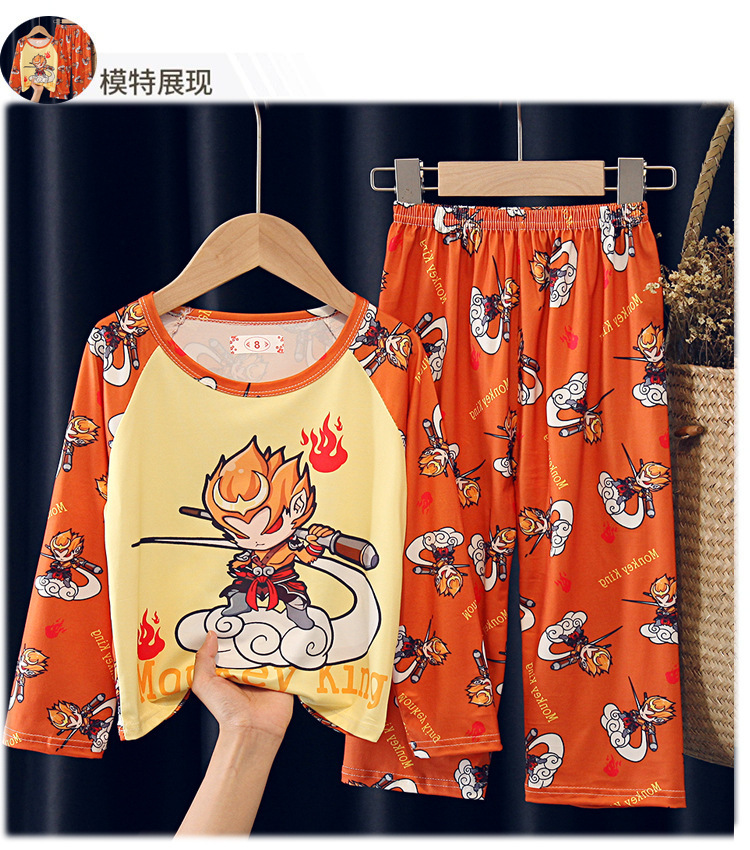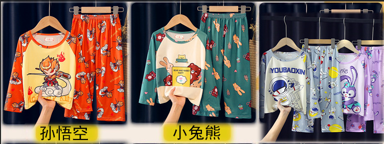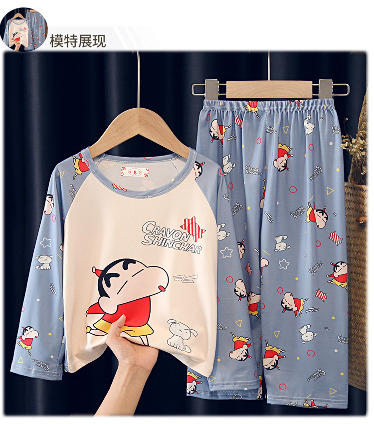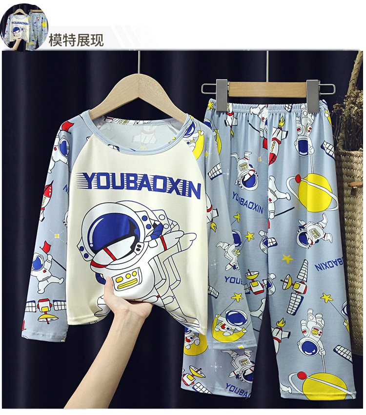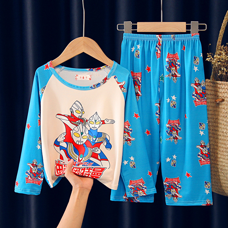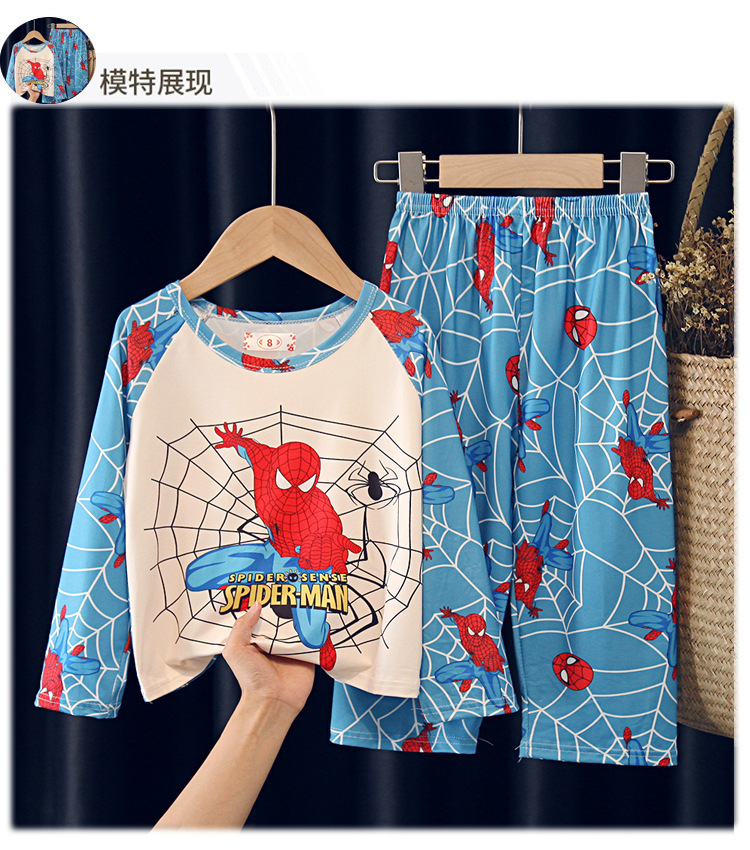 봄과 가을 여름 얇은 어린이 잠옷 남자 만화 스파이더 맨 캐주얼 세트 어린이 에어컨 홈 옷