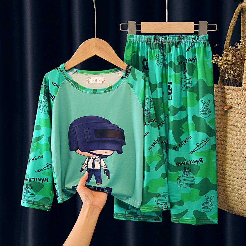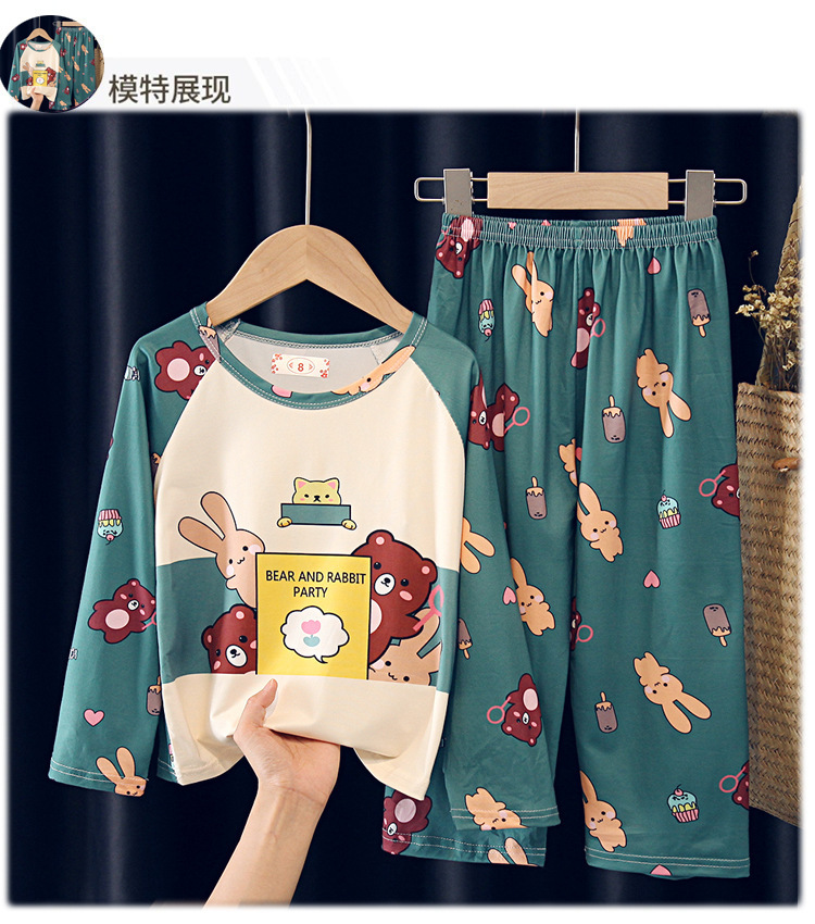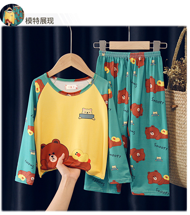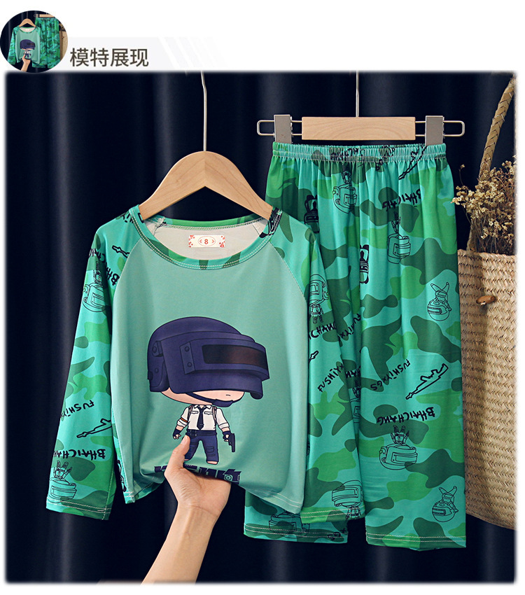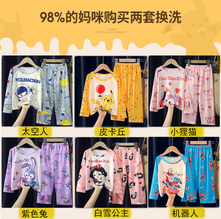 봄과 가을 여름 얇은 어린이 잠옷 남자 만화 스파이더 맨 캐주얼 세트 어린이 에어컨 홈 옷