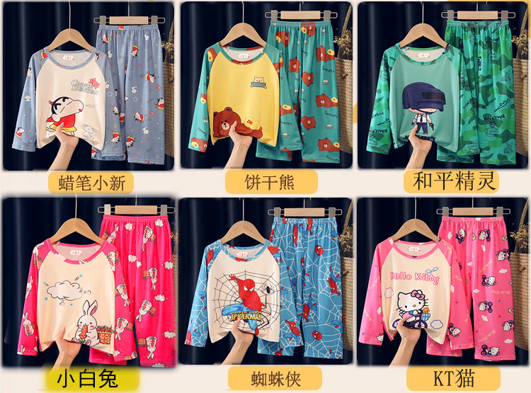 봄과 가을 여름 얇은 어린이 잠옷 남자 만화 스파이더 맨 캐주얼 세트 어린이 에어컨 홈 옷스토어 가기