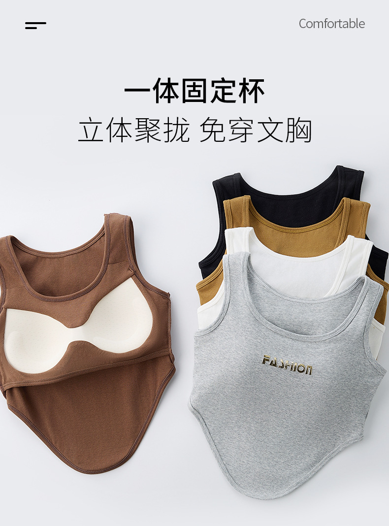 패션 스파이스 걸스 퓨어 코튼 베이스 카미 솔 조끼 여성 슬리밍 아우터웨어 내복 속옷 가슴 패드 원활한 통기성 아름다운 등스토어 가기