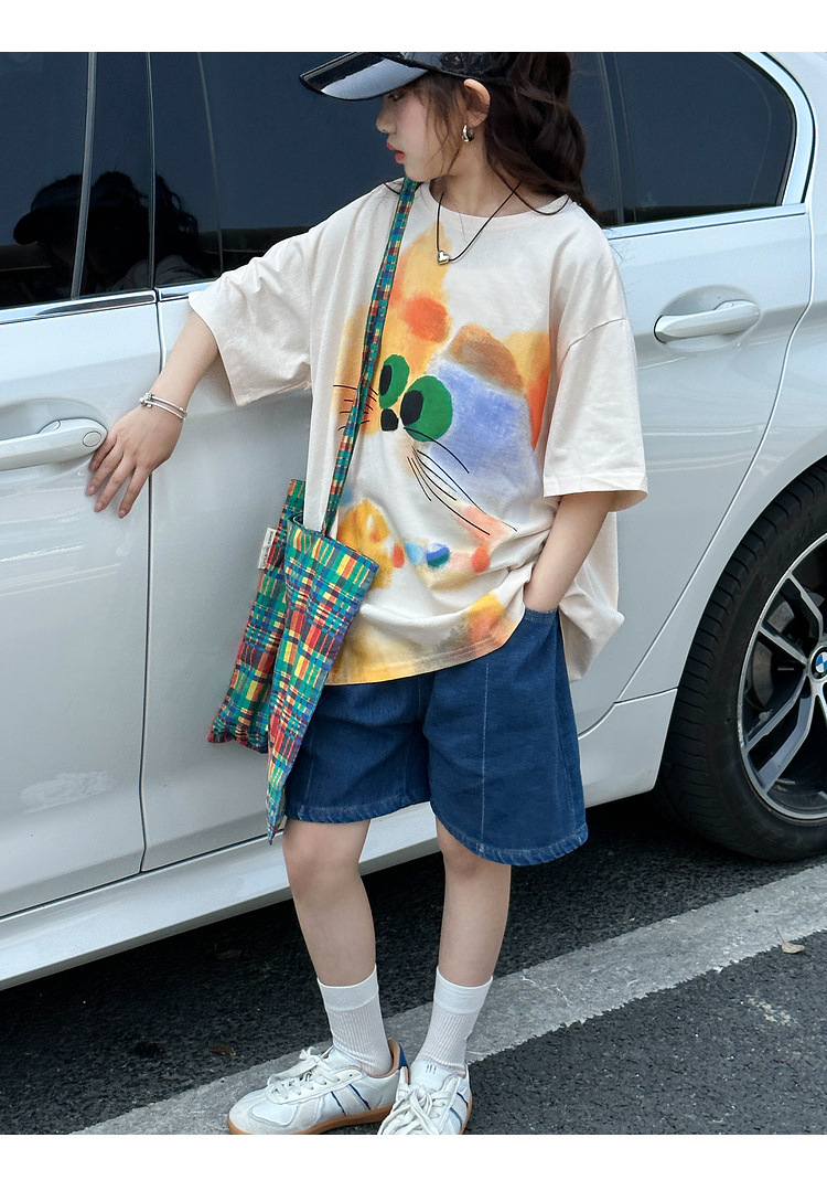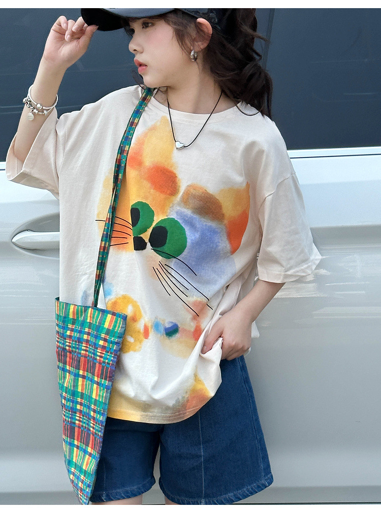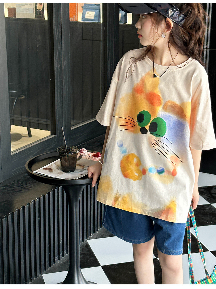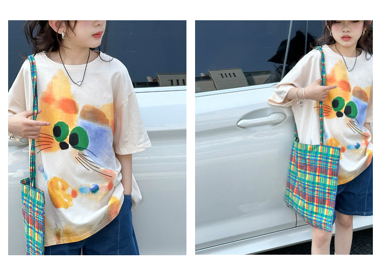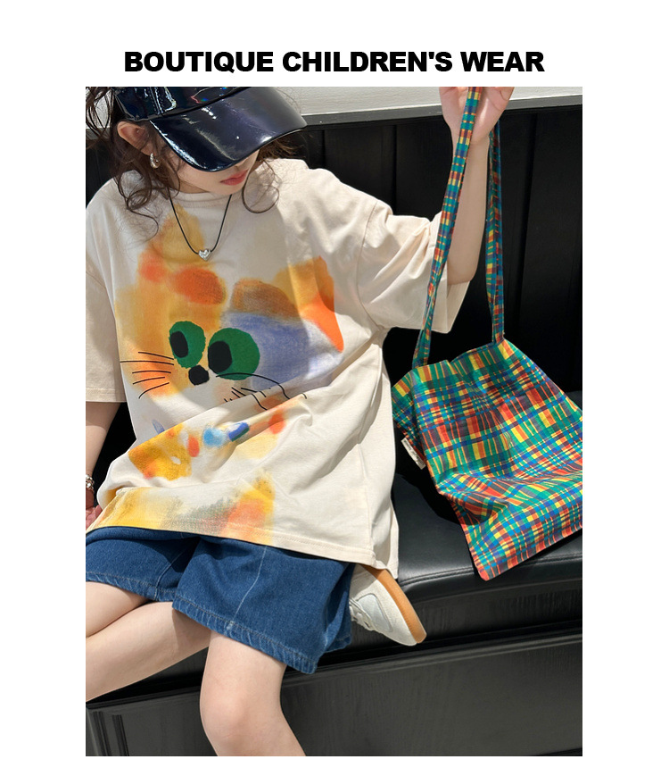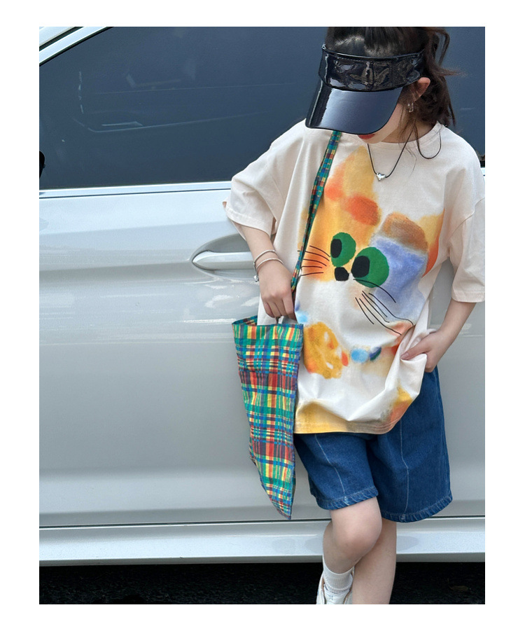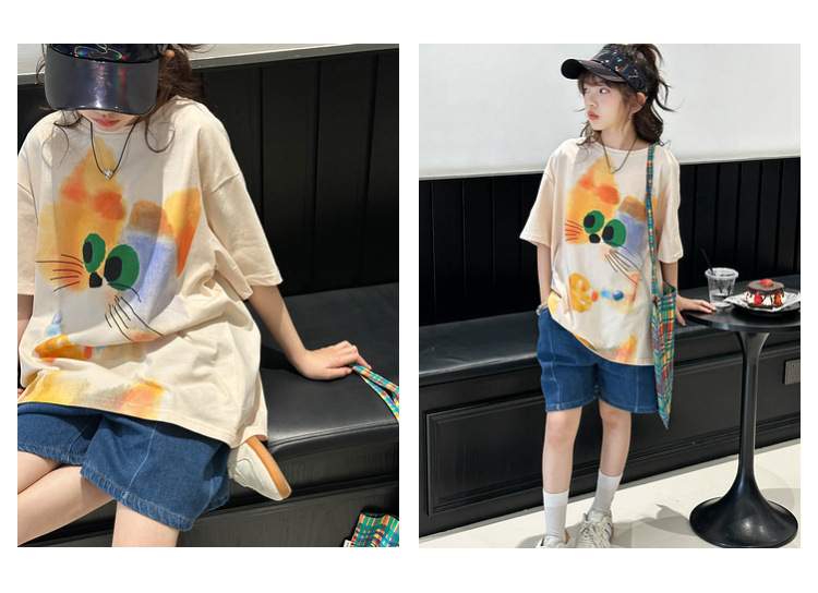 여자 반팔 티셔츠 여름 2025 새로운 큰 어린이 여름 스타일 만화 탑 어린이 한국 스타일 유행 여름 옷스토어 가기