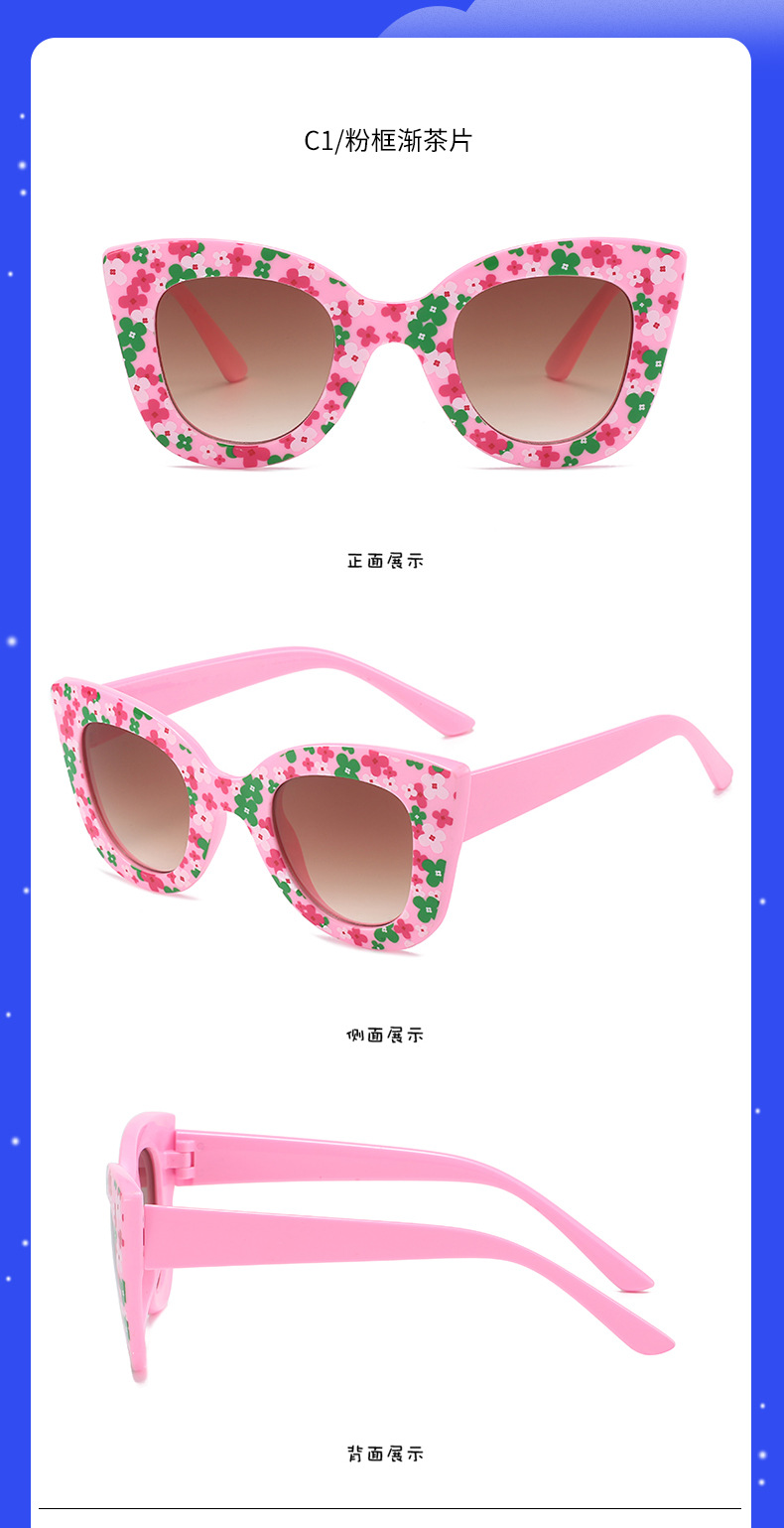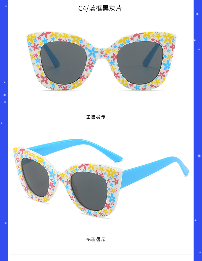 새로운 안티 UV 어린이 거울 패션 고양이 눈 어린이 선글라스 만화 인쇄 귀여운 소녀의 장식 선글라스스토어 가기