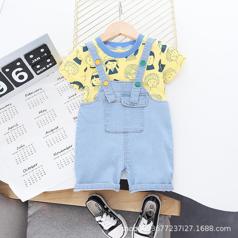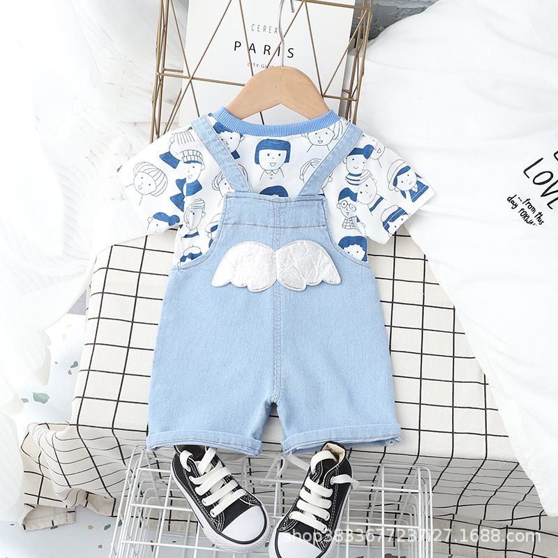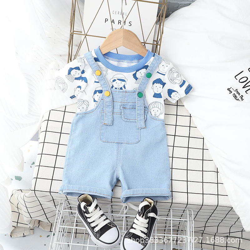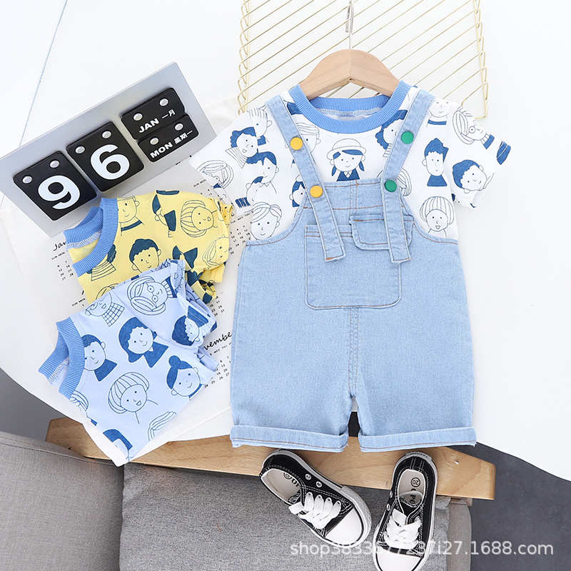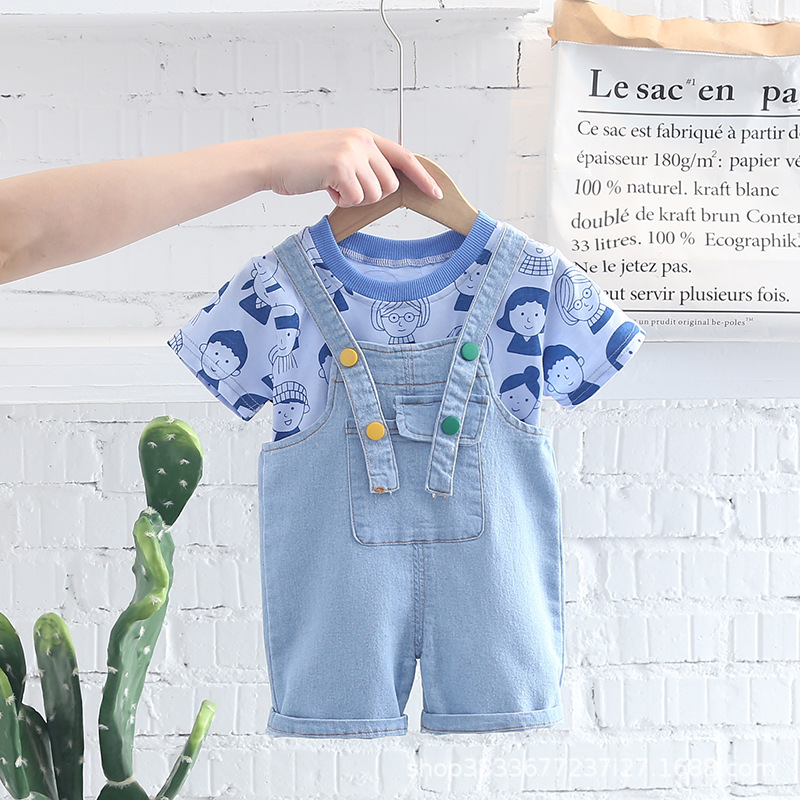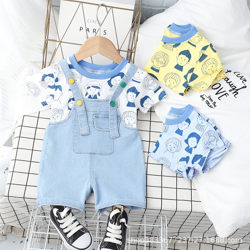 남학생과 아기를위한 남학생과 여학생 짧은 소매 세트 1-3 세 5 여름 옷 만화 멜빵 두 조각 세트 머리카락스토어 가기