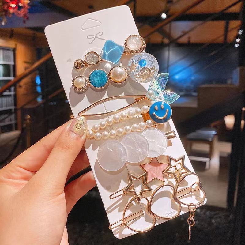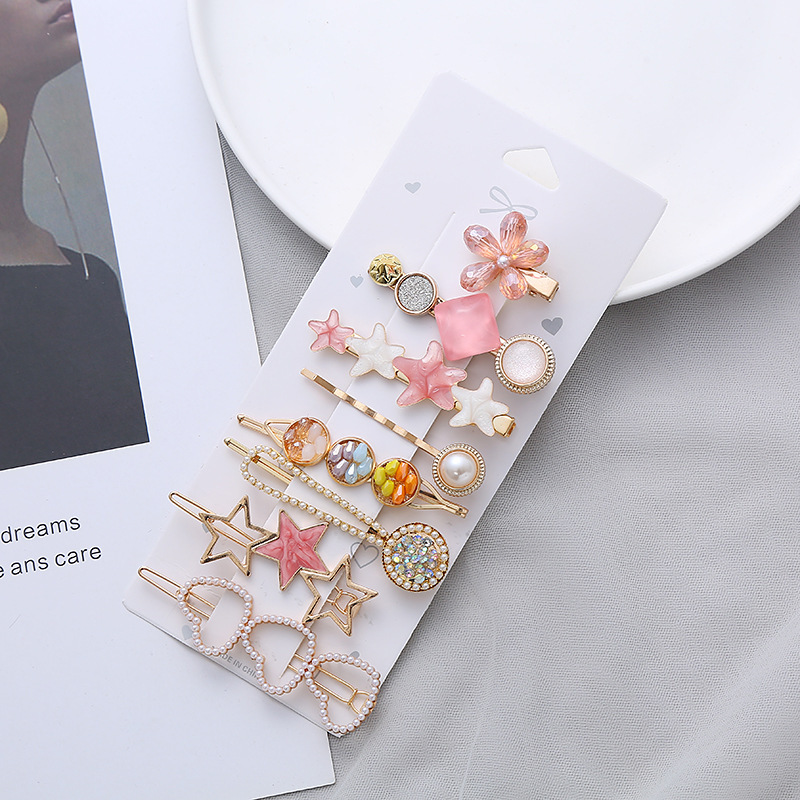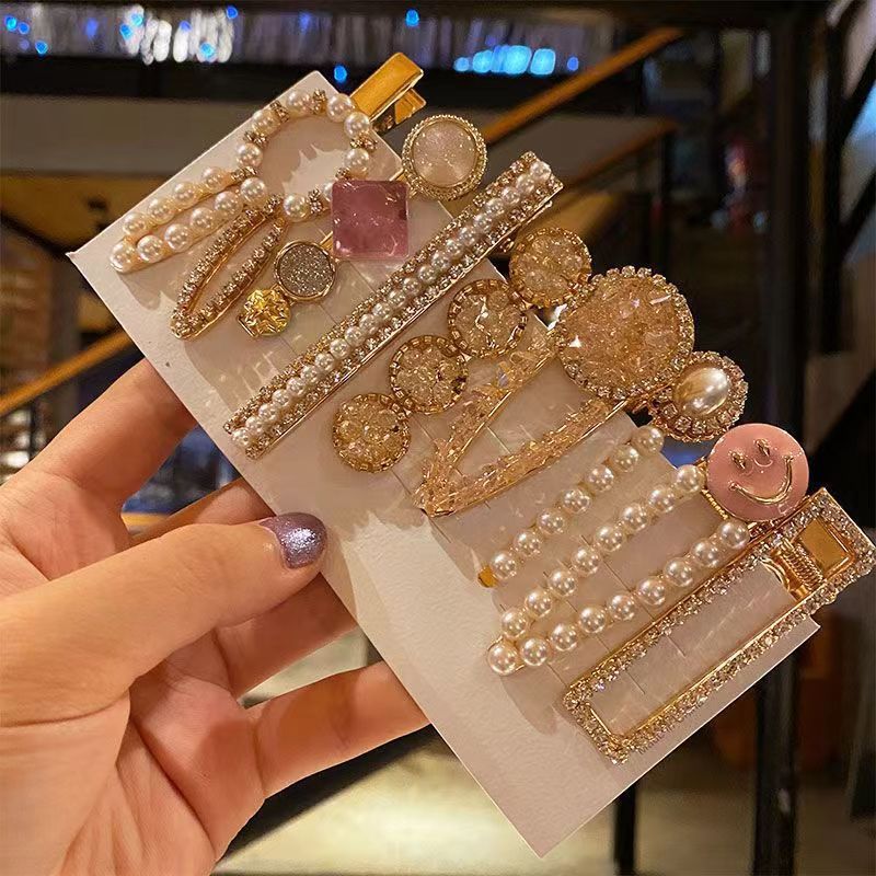 한국판 같은 핑크 벚꽃 8 피스 진주 머리핀 한국, 그물 빨간 머리 장식 앞머리 클립 사이드 클립 도매