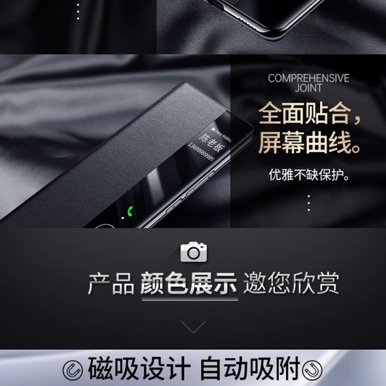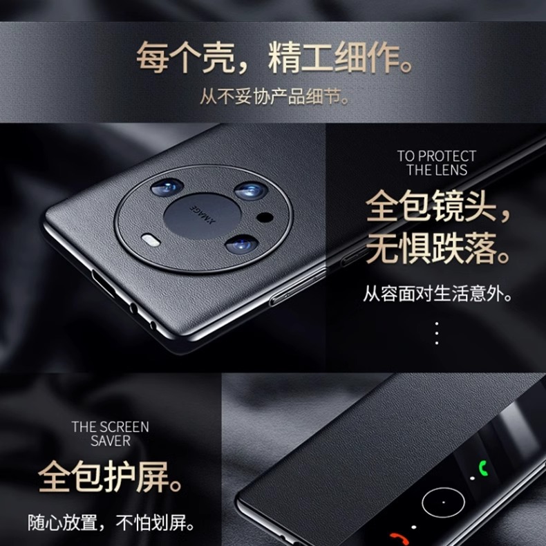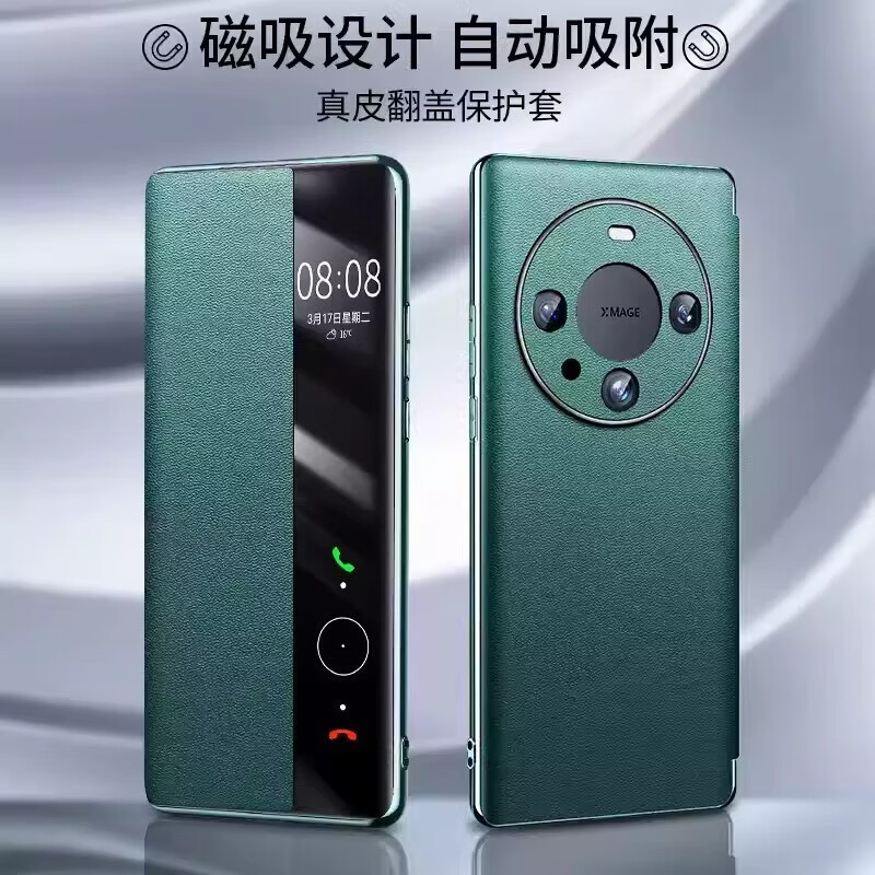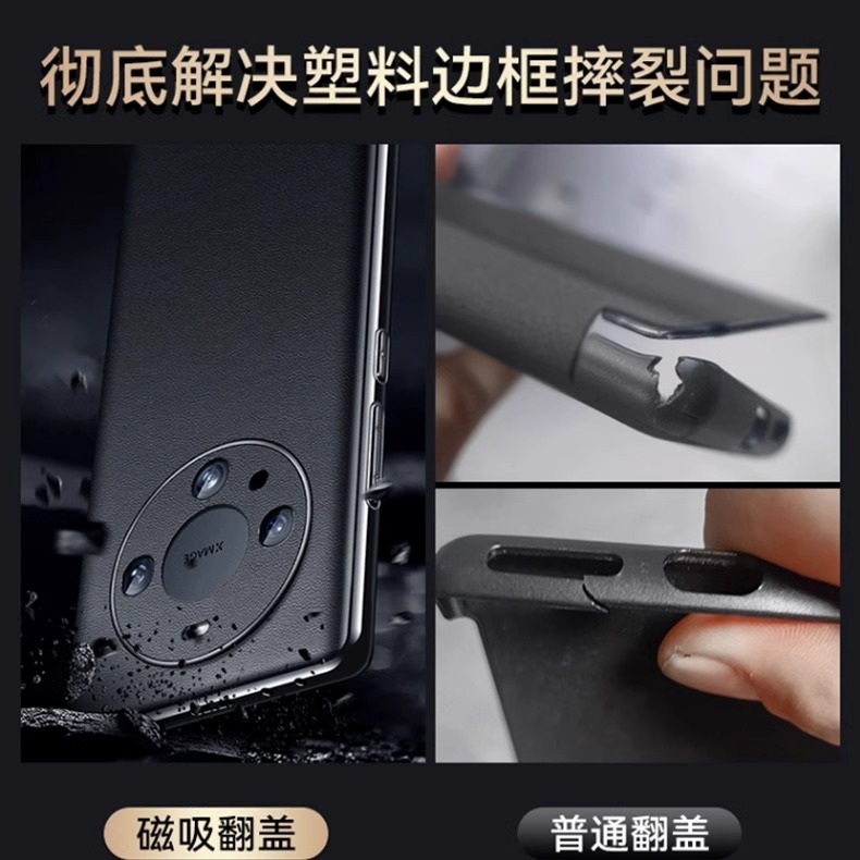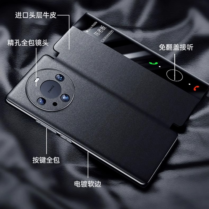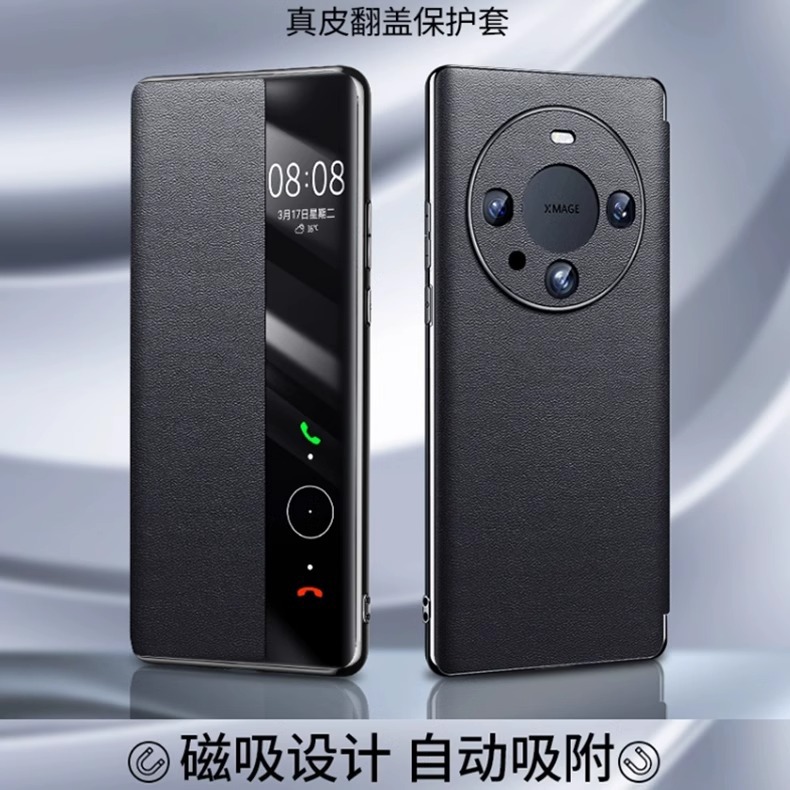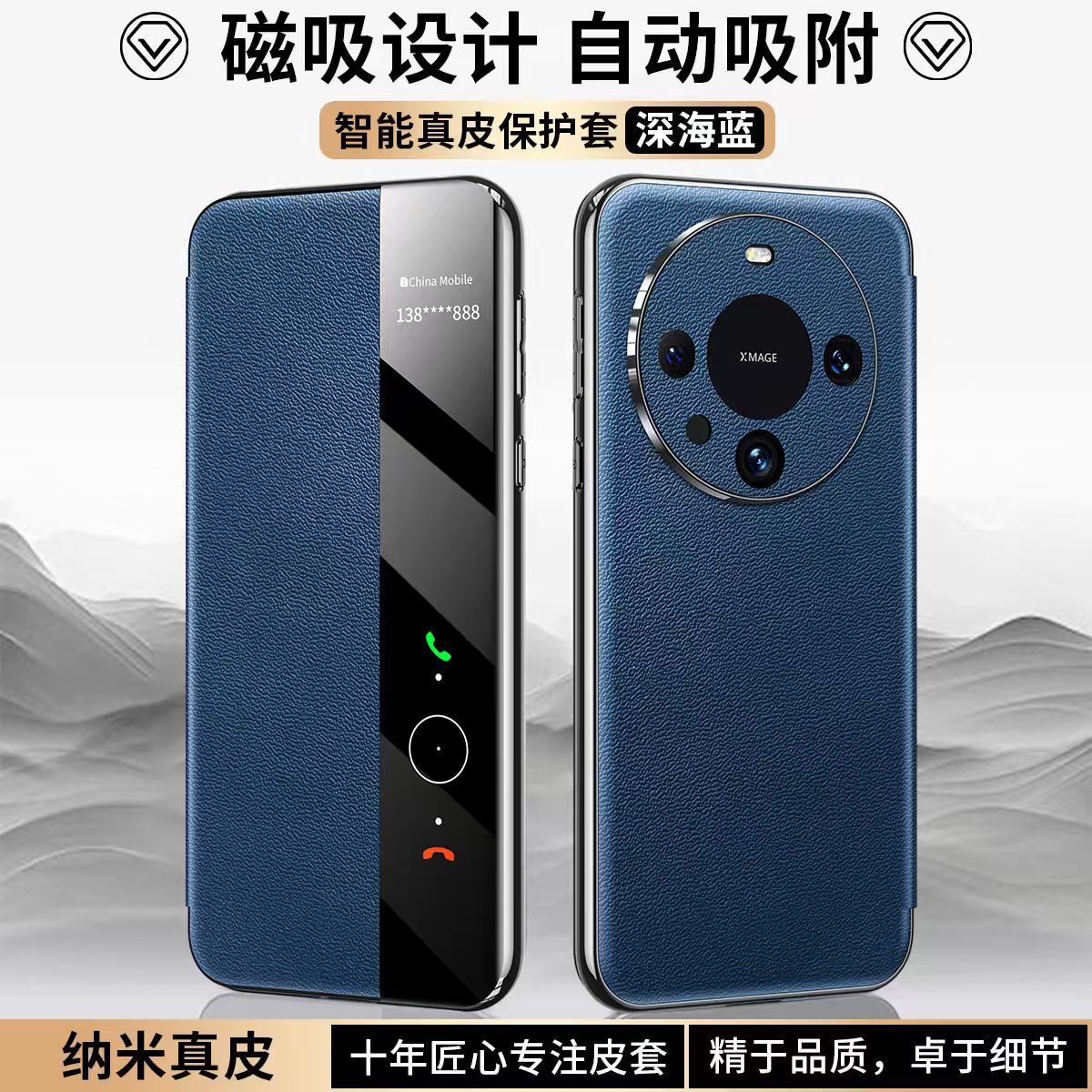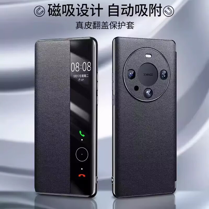새로운 화웨이 Mate60pro 전화 케이스 Mate60 자기 흡수 가죽 스마트 플립 커버 전체 적용 범위 보호스토어 가기