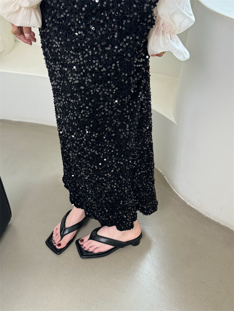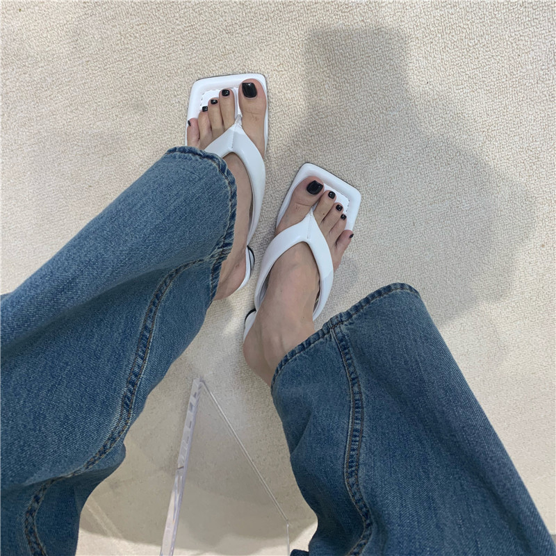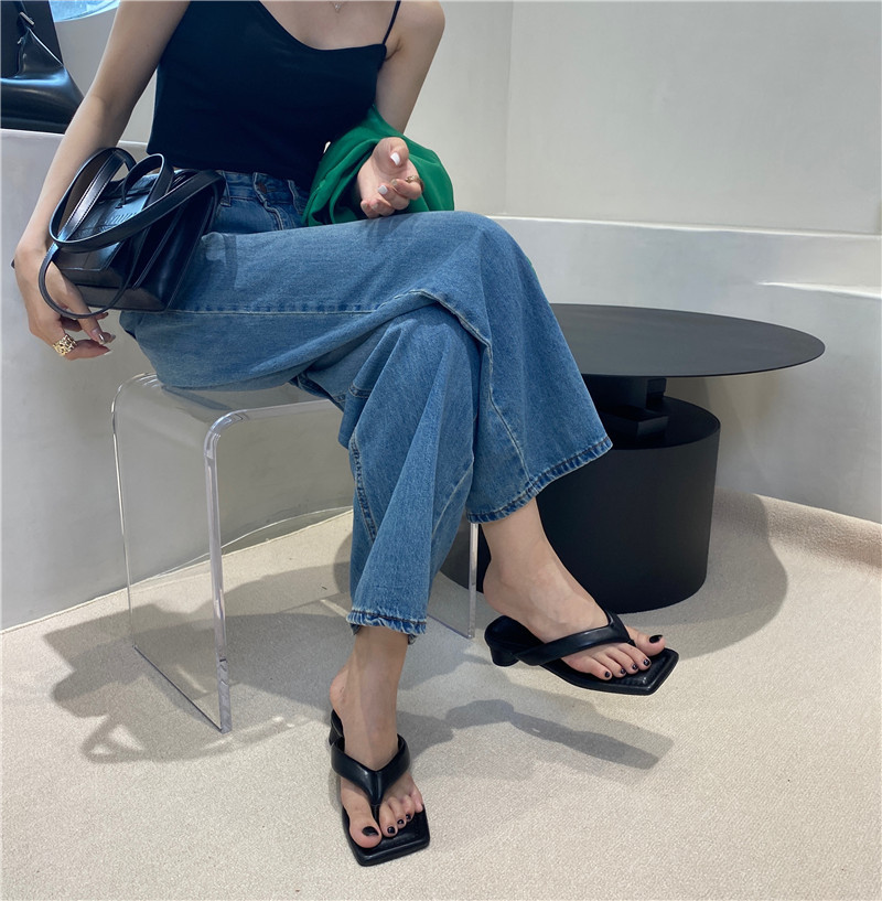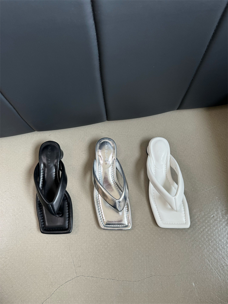 한국 스타일 스퀘어 발가락 실버 슬리퍼 여성 2025 여름 새 스타일 겉옷 두꺼운 발 뒤꿈치 증가 편안한 비치 샌들스토어 가기