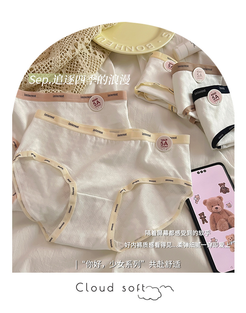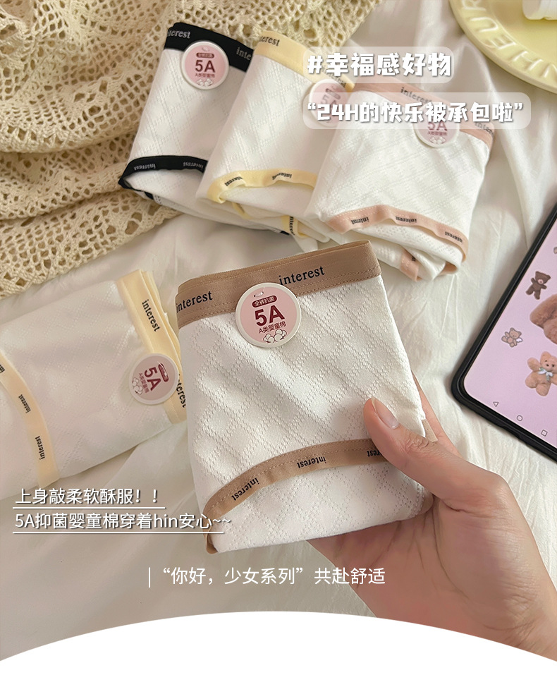 A급 베이비 코튼 속옷, 5A급 항균 문자, 대비색 순면 바닥, 여성 속옷, 피부 친화적이고 통기성 좋은 팬티