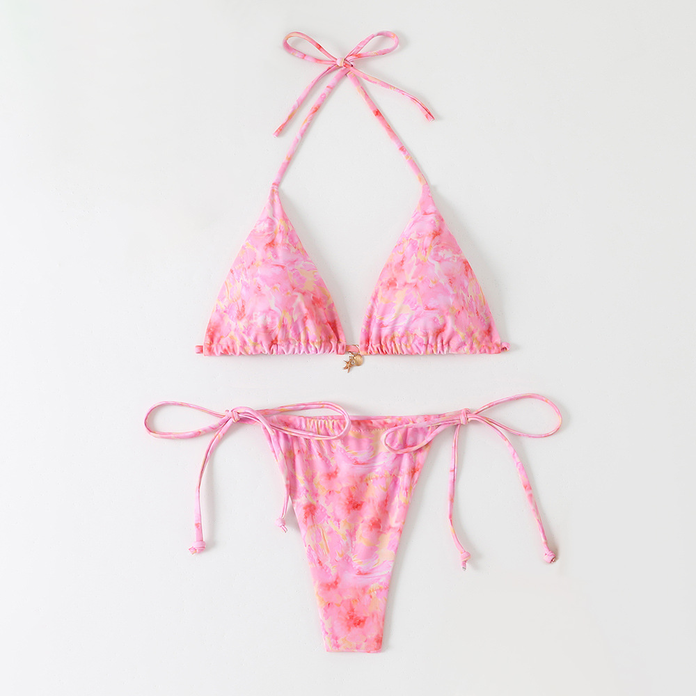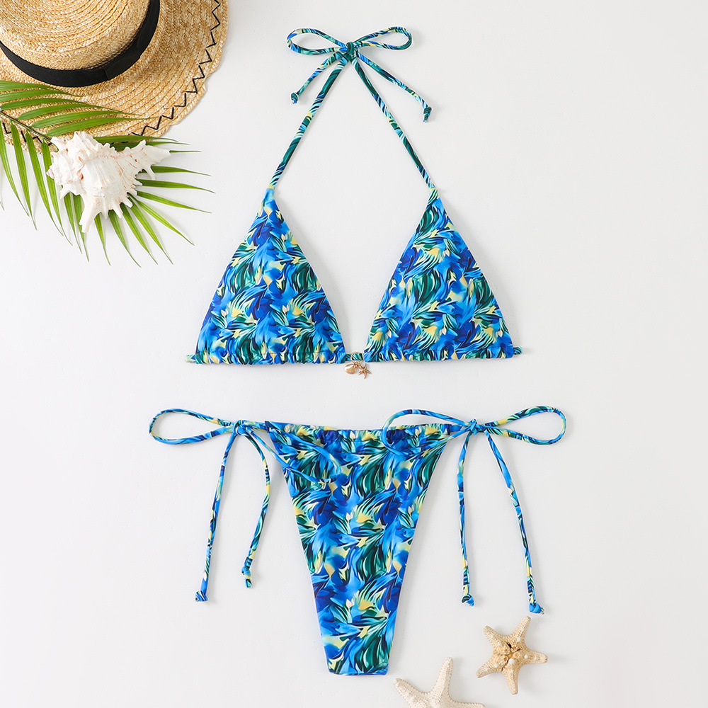 2025 신상 여성 수영복 유럽 및 미국 스타일 레오파드 프린트 플로럴 섹시한 삼각형 백리스 비키니 수영복 재고 있음스토어 가기