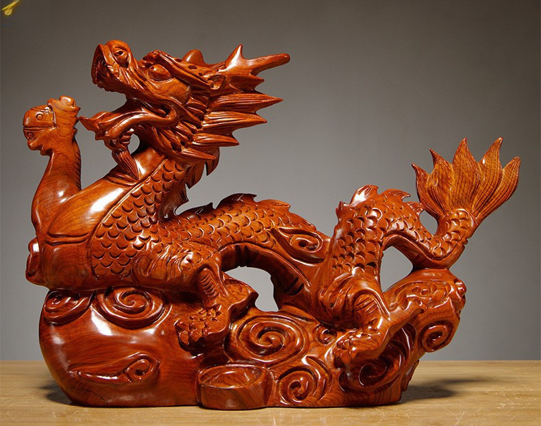 나무 공예 Huali 솔리드 우드 새겨진 드래곤 장식품 조디악 드래곤 거실 장식 나무 공예 선물