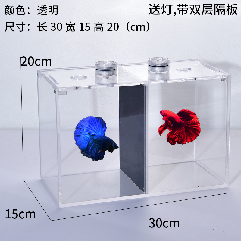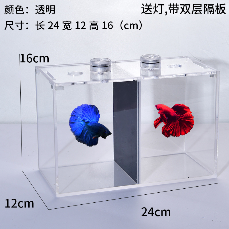 Dou Yu 더블 격자 탱크 아크릴 Dou Yu PK 탱크 Dou Yu 번식 탱크 데스크탑 수족관 마이크로 풍경 게으른 세트