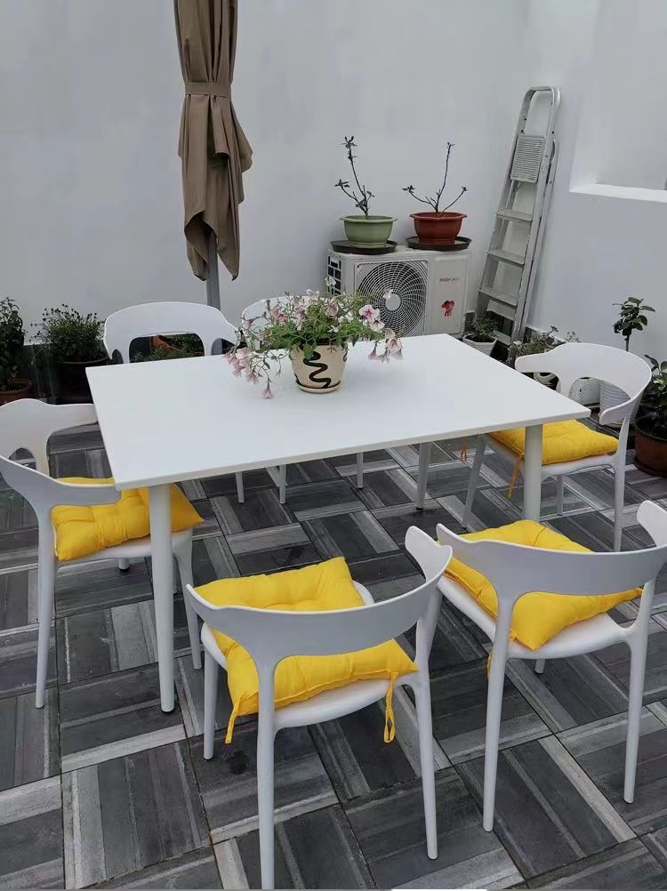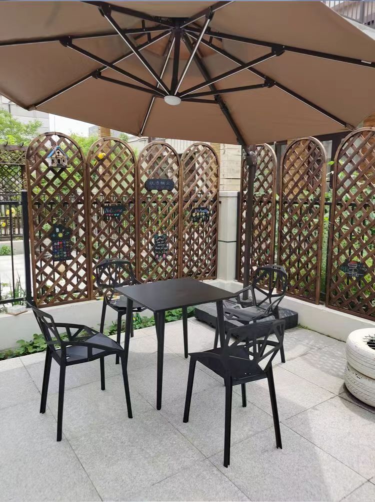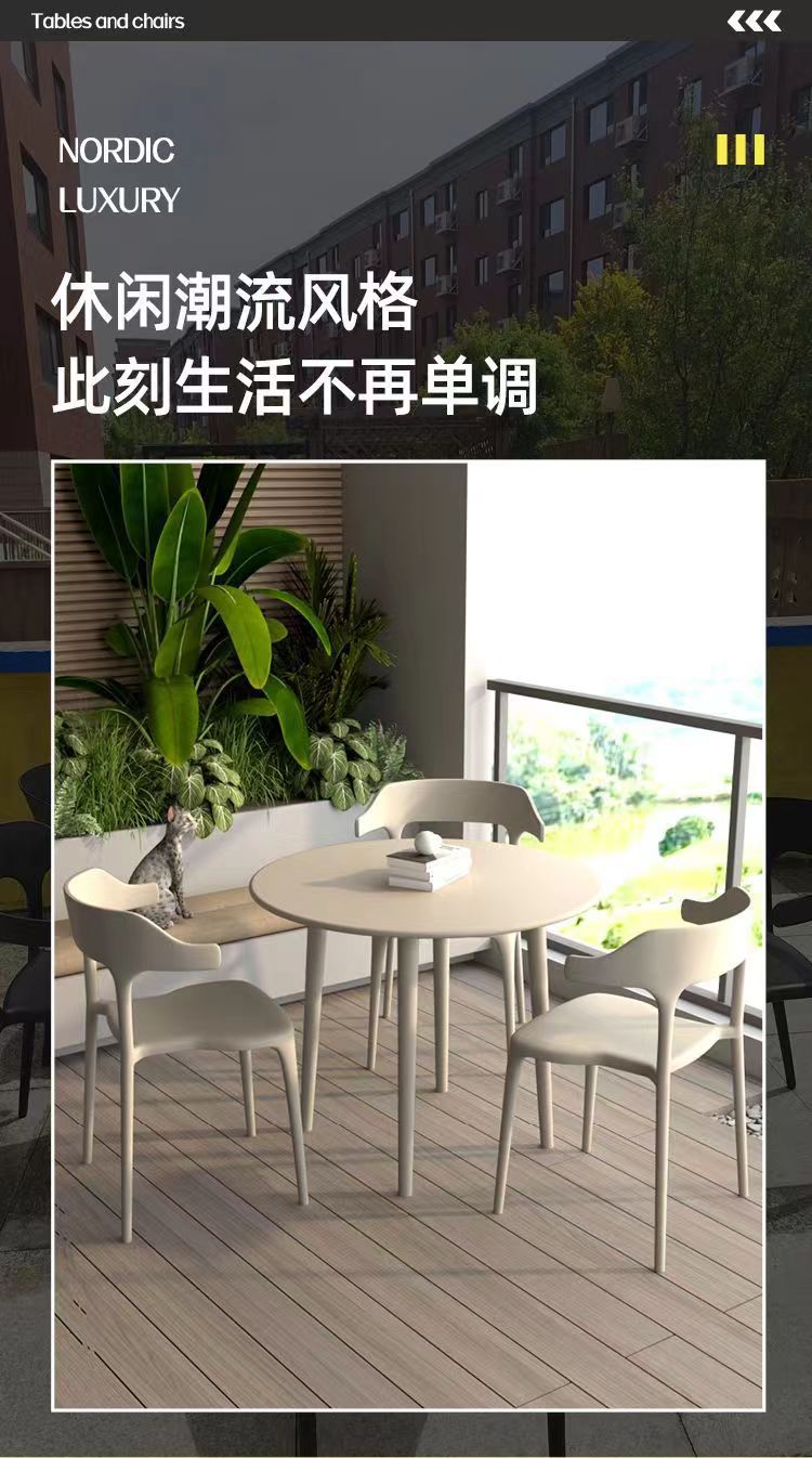 야외 테이블과 의자 세트, 플라스틱 야외 찻집, 발코니 레저용 3~4인용 세트, 탄소강 의자스토어 가기