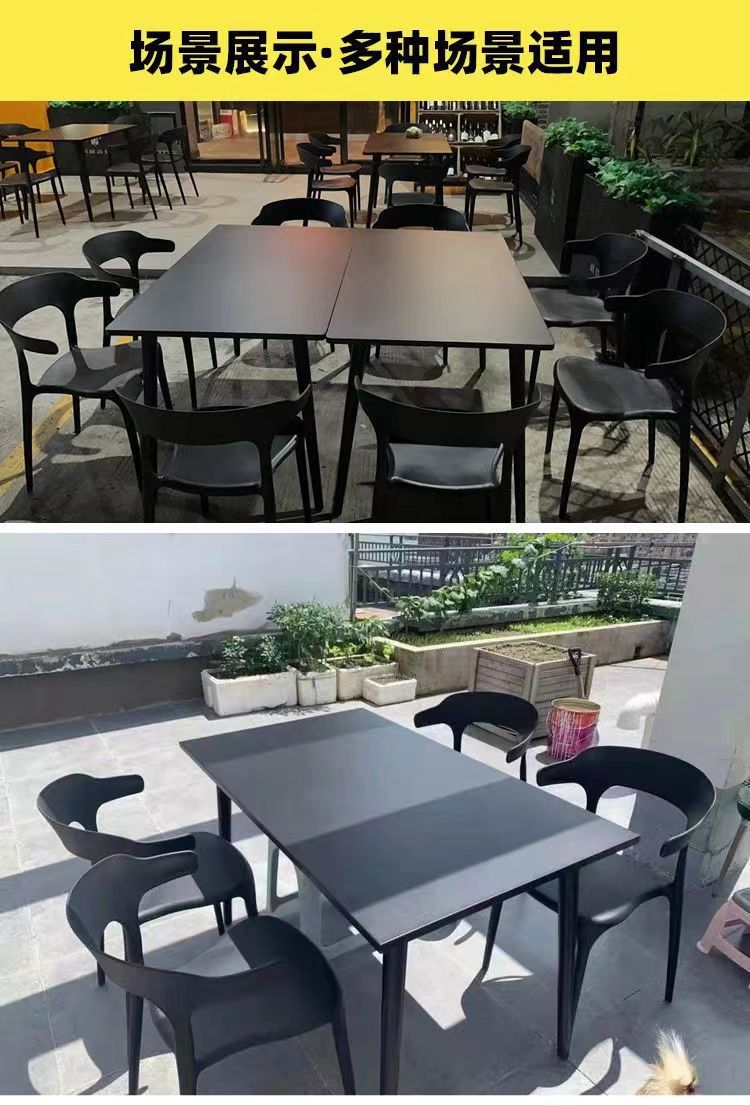 • 120*70 탄소 강철 긴 테이블 4 황소 뿔 의자