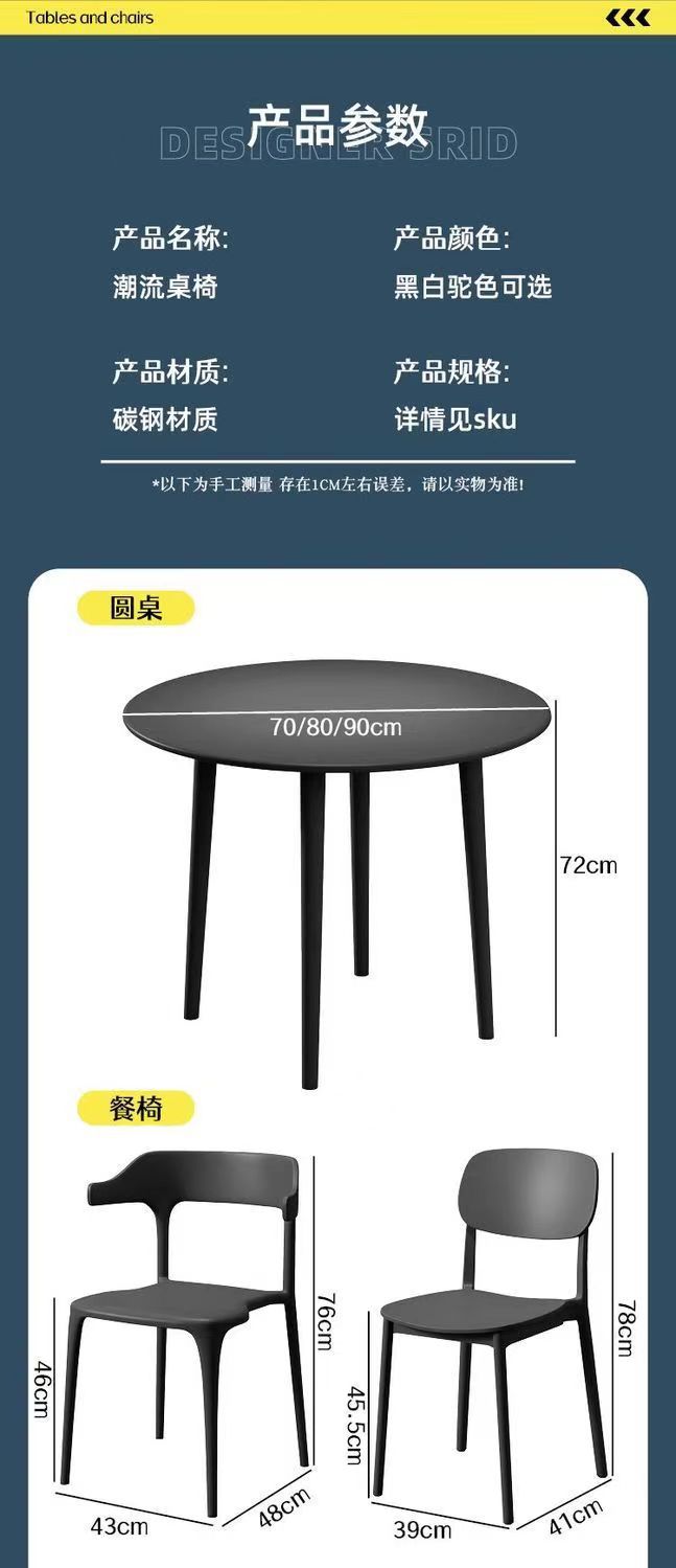 • 80cm 탄소 강철 원형 테이블 3 경적 의자