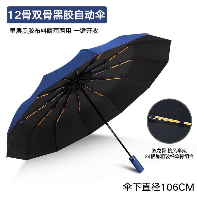 60-뼈 접히는 우산 이중 사용 완전 자동 우산 남성용 대형 강화 블랙 고무 햇빛 썬 우산 맞춤형