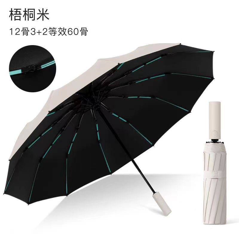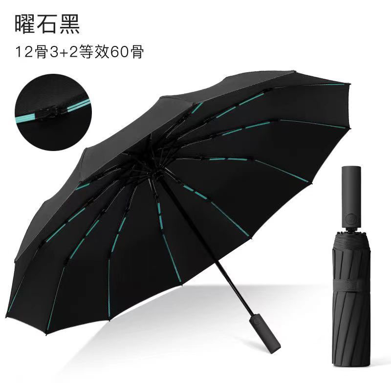 60-뼈 접히는 우산 이중 사용 완전 자동 우산 남성용 대형 강화 블랙 고무 햇빛 썬 우산 맞춤형스토어 가기