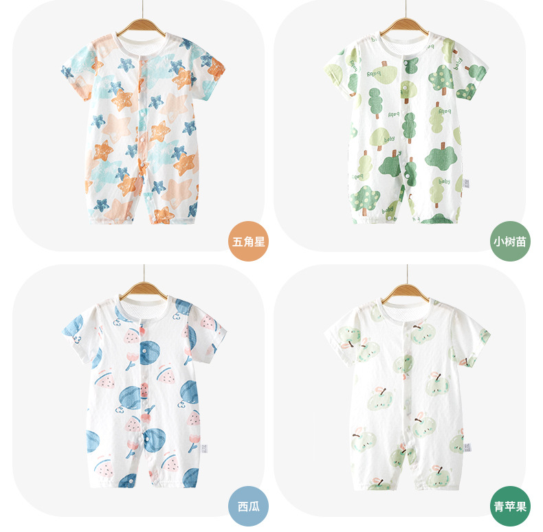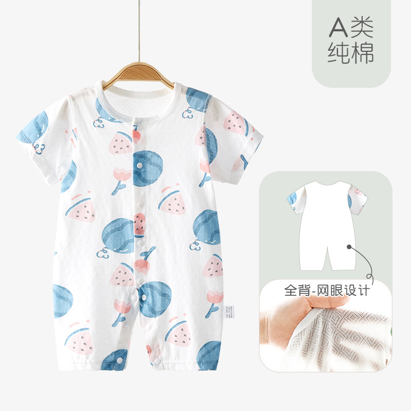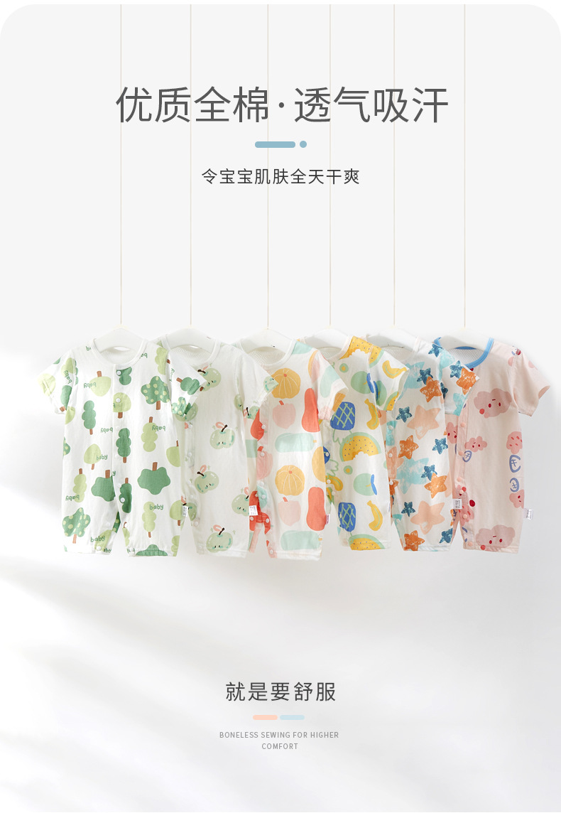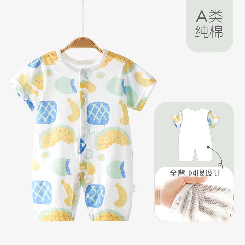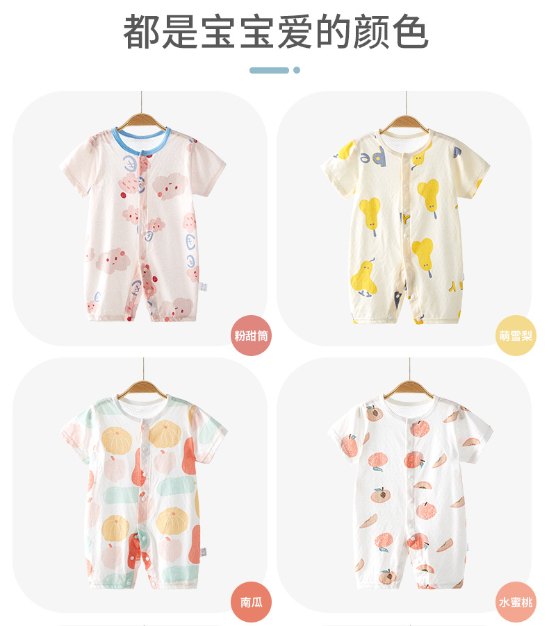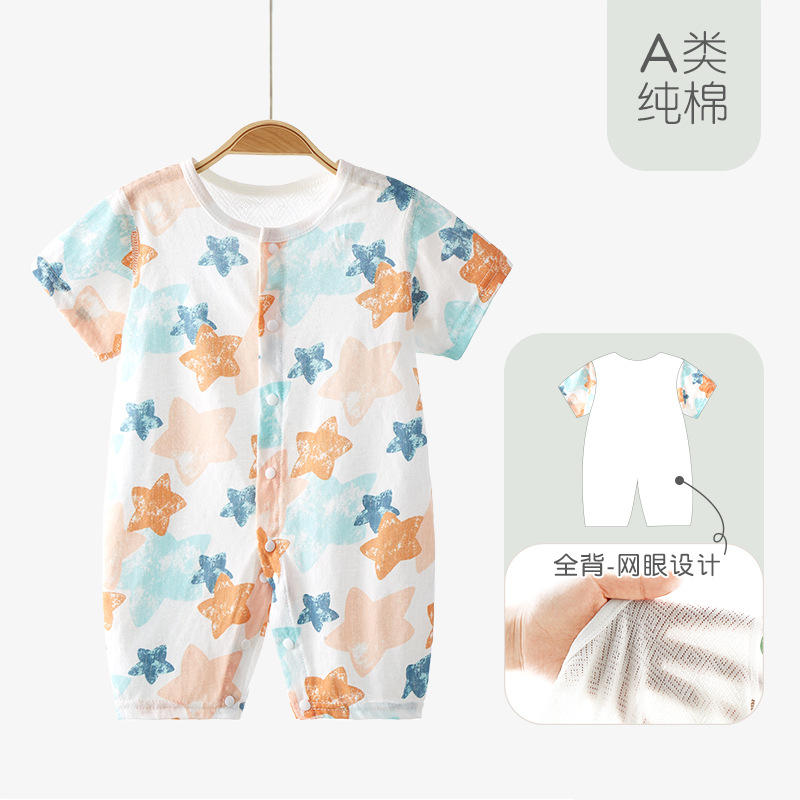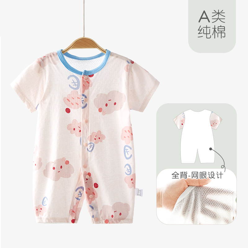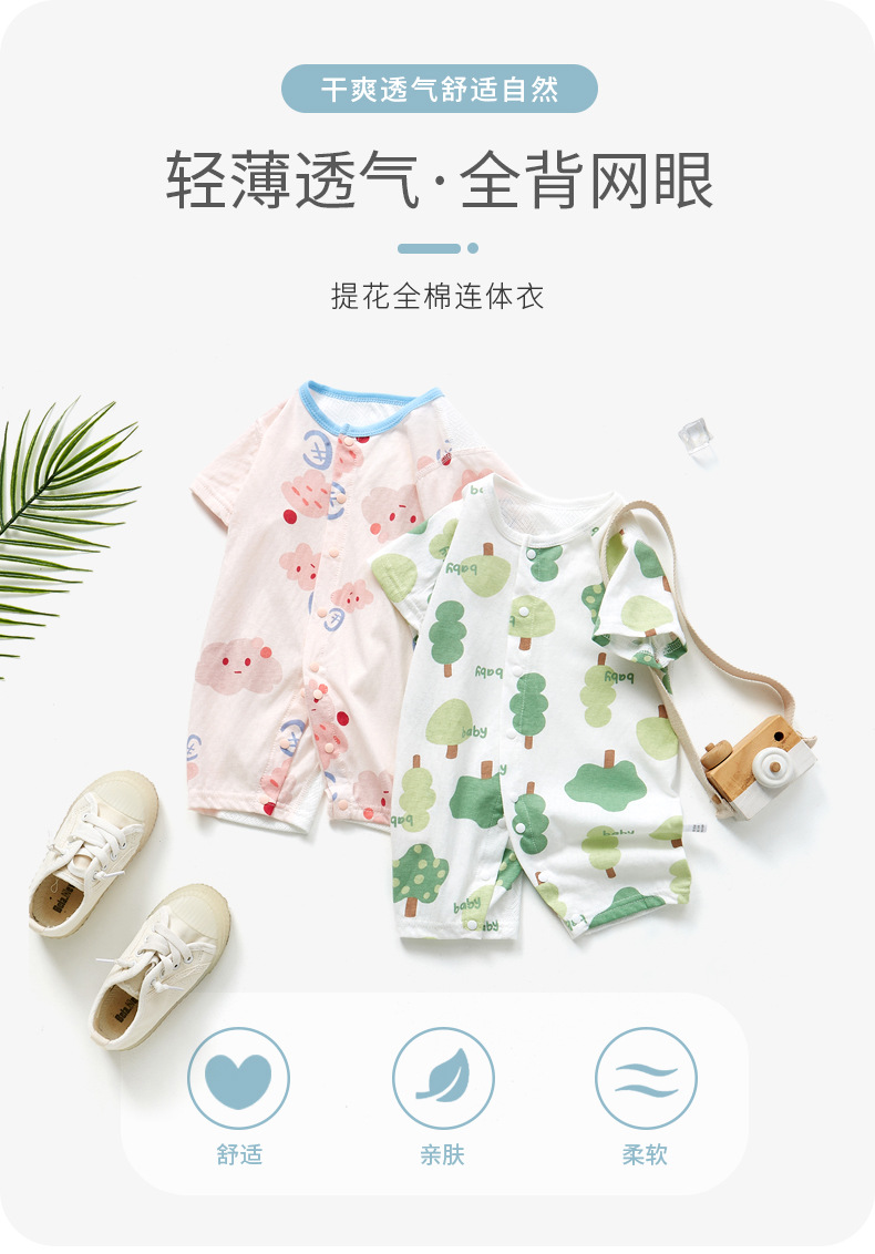 아기 점프 수트 짧은 소매 여름 얇은 클래스 아기 옷 귀여운 메쉬 여름 코튼 뼈없는 등반 세트 0-1스토어 가기