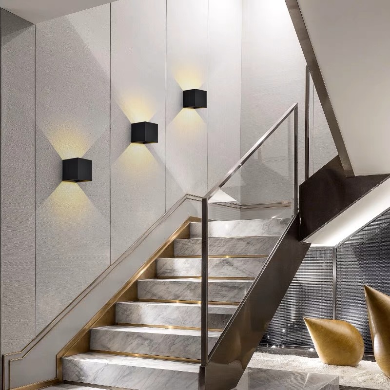 공장 도매 LED 야외 방수 벽 램프 현대 간단한 사각형 거실 침실 침대 옆 램프 수동 조명