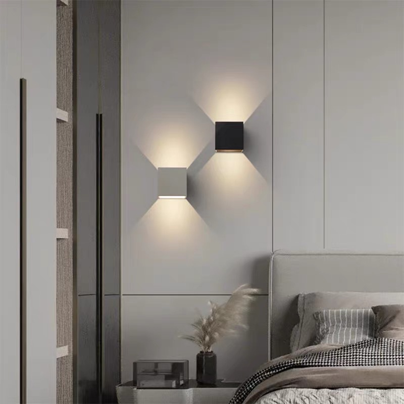공장 도매 LED 야외 방수 벽 램프 현대 간단한 사각형 거실 침실 침대 옆 램프 수동 조명스토어 가기