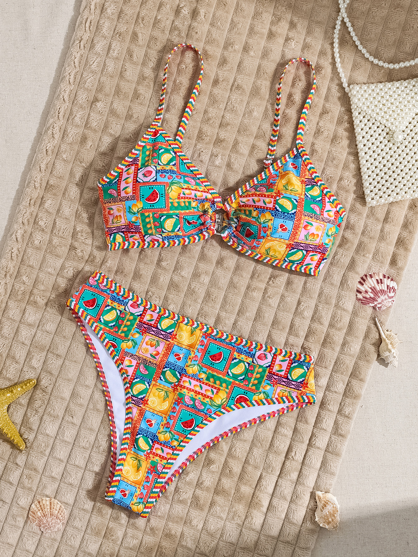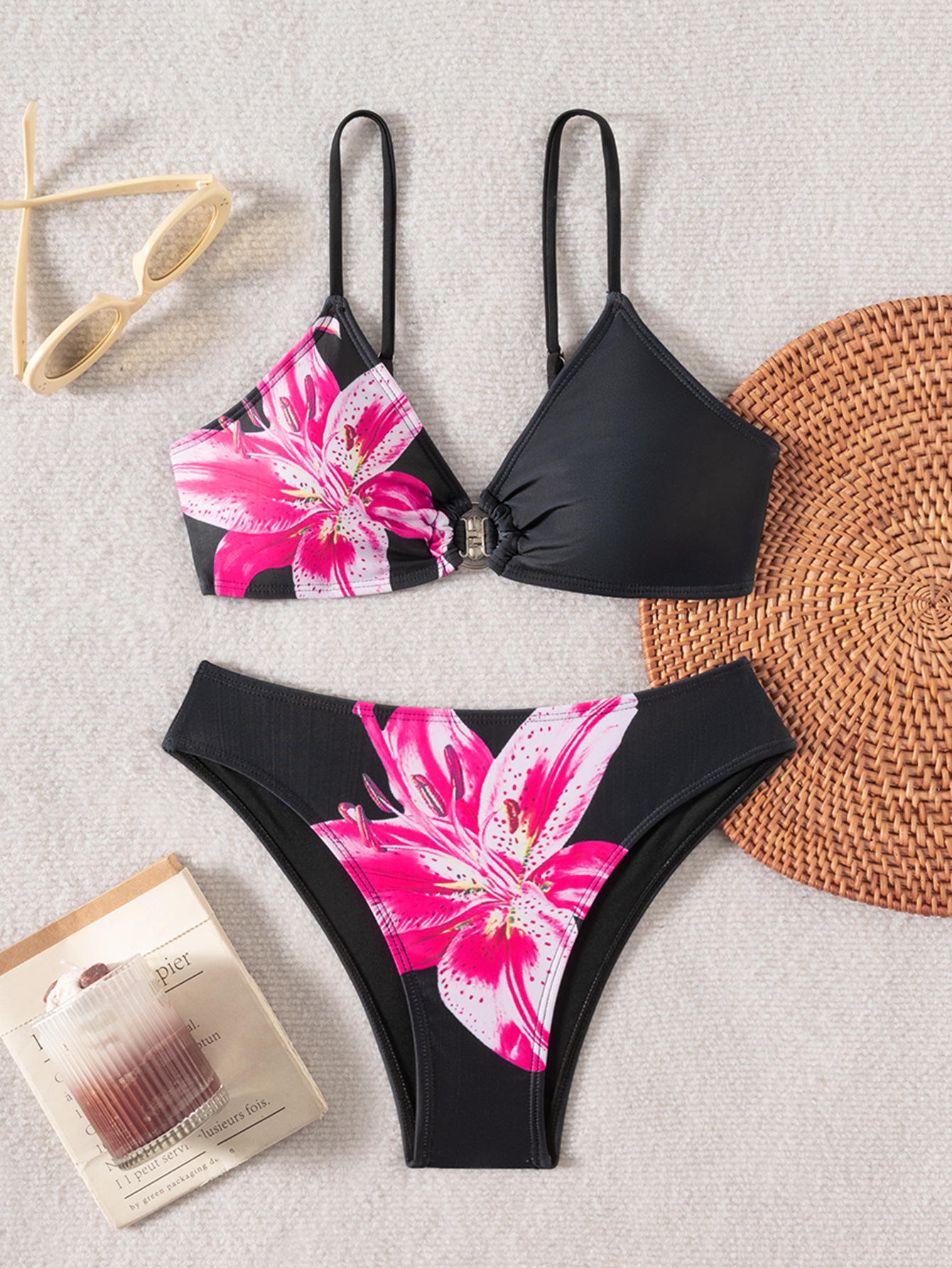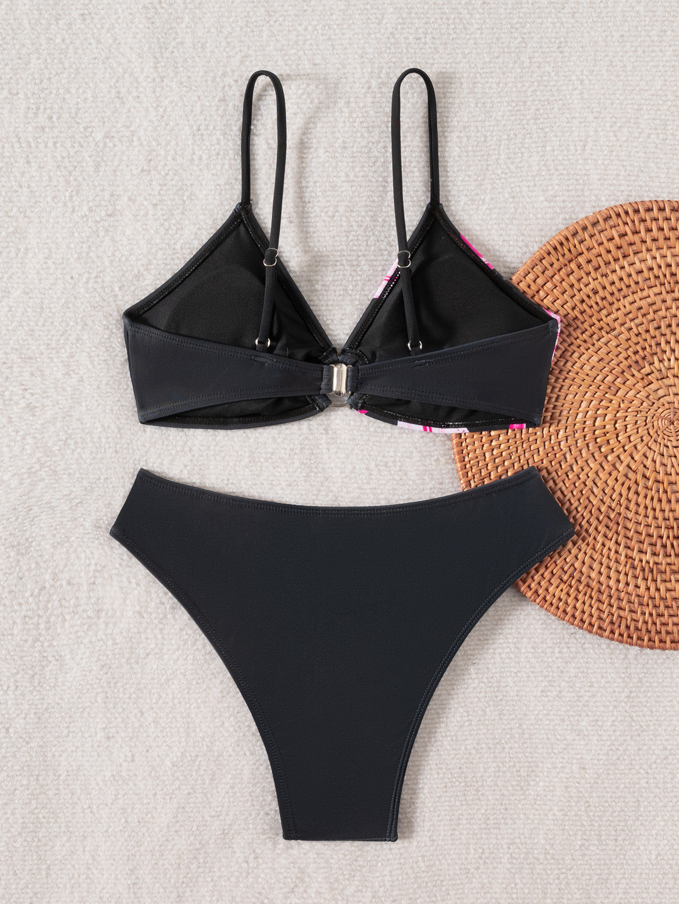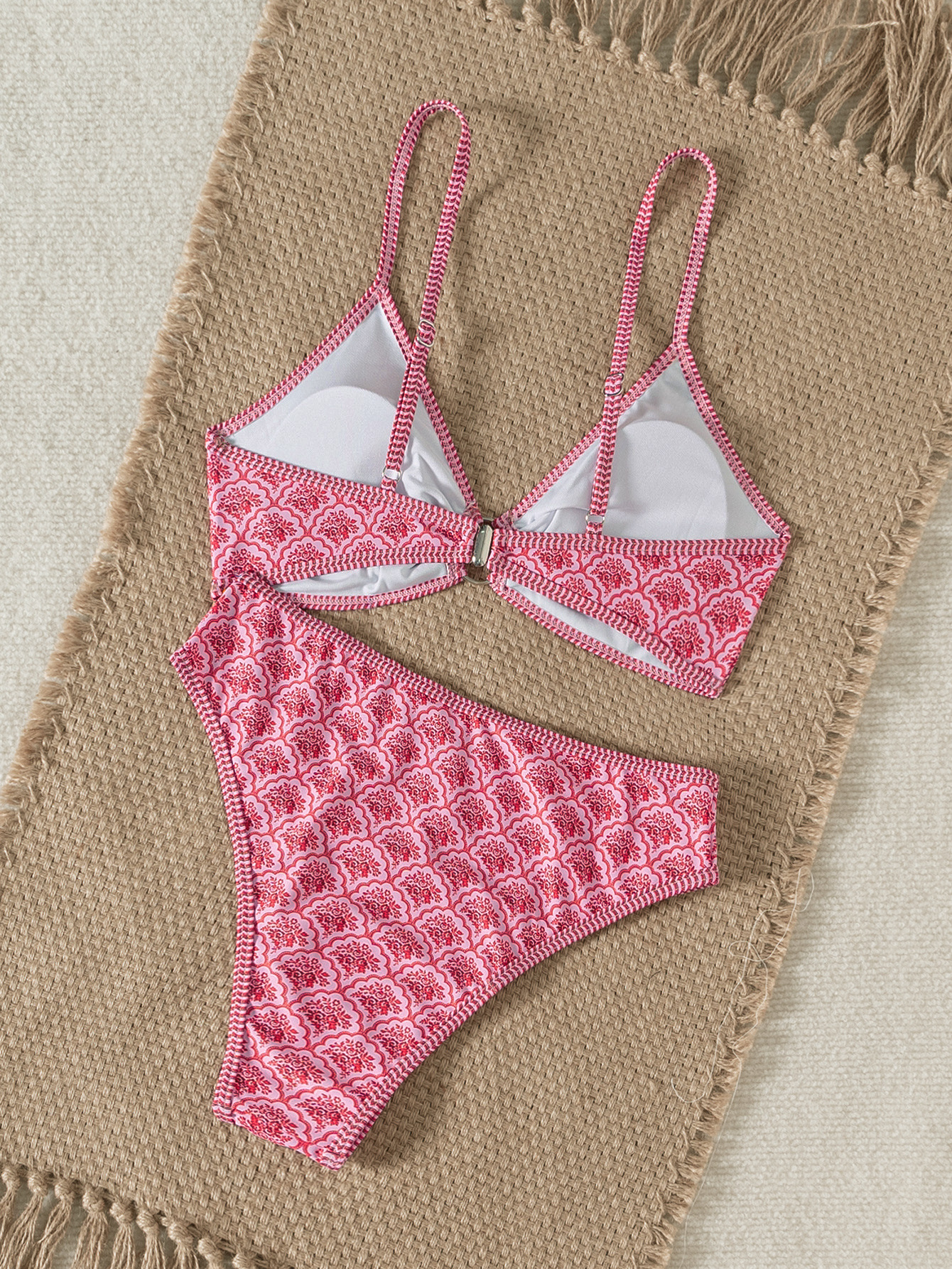 2025 새로운 비키니 크로스보더 유럽과 미국의 AliExpress 솔리드 컬러 핏 삼각형 컵 섹시한 백리스 비키니 수영복