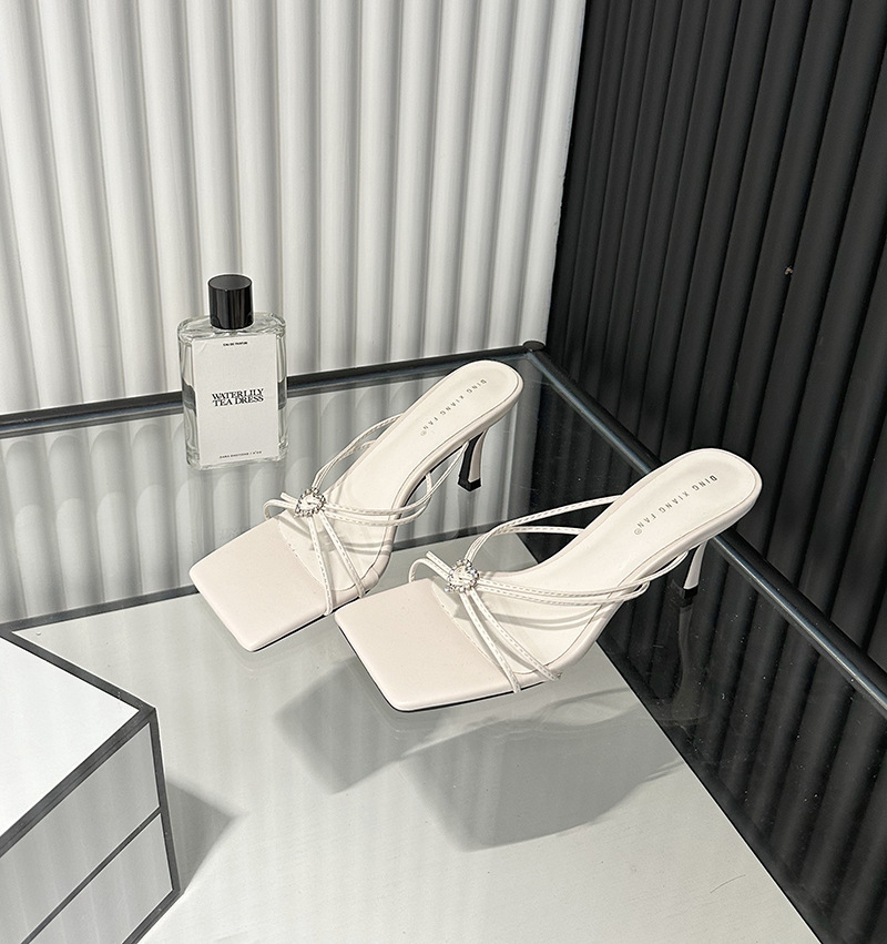 2023 년 여름 매일 올 매치 스퀘어 헤드 얇은 스트랩 샌들 패션 달콤한 사랑 다이아몬드 버클 하이힐 여성 신발