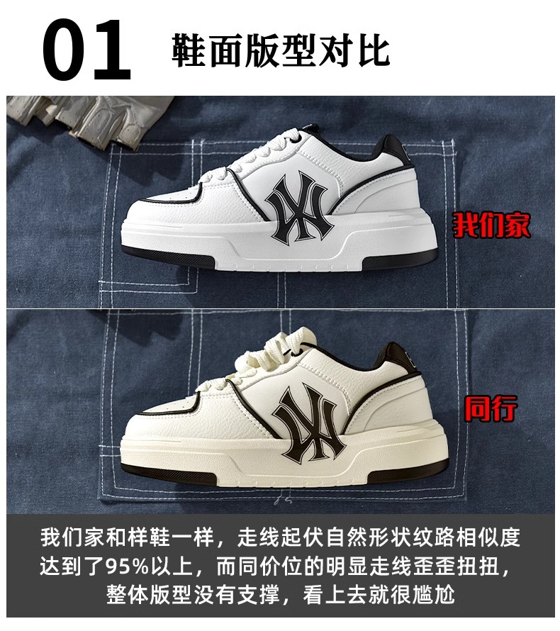 뉴욕 양키스 시니어 신발 여성 2024 여름 통기성 신식 화이트 신발 두꺼운 단독 보드 신발 남성 운동화 증가