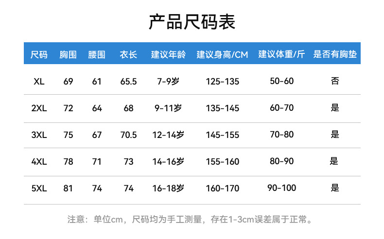 • 5XL (권장 높이 160-170cm 가슴 패드)