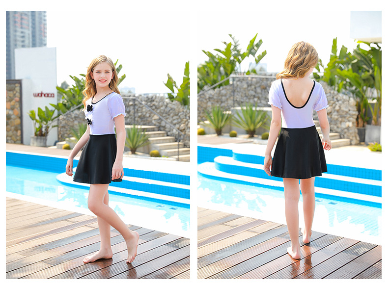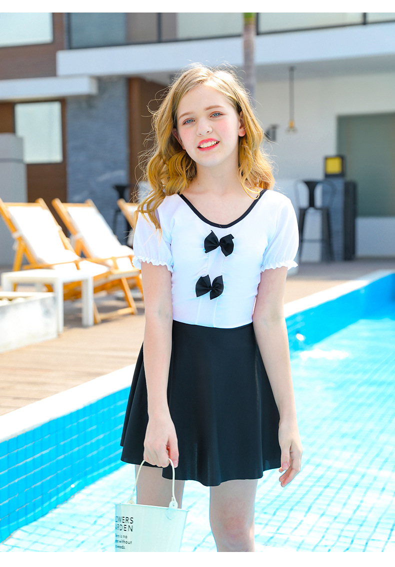 초등 및 중학생 십대 패션 서양식 대형 어린이 수영복 통기성 빠른 건조 스커트 스타일 여자 수영복