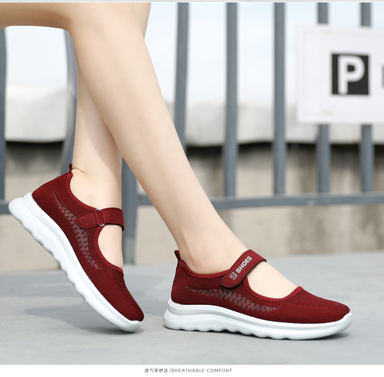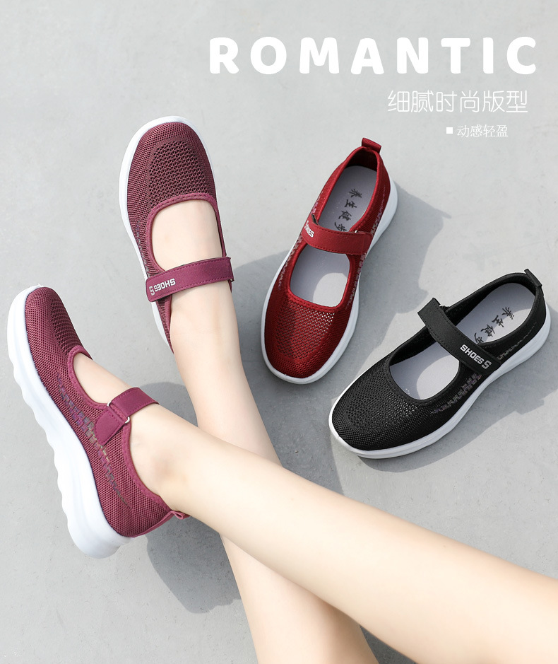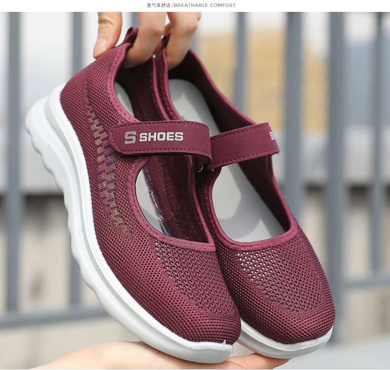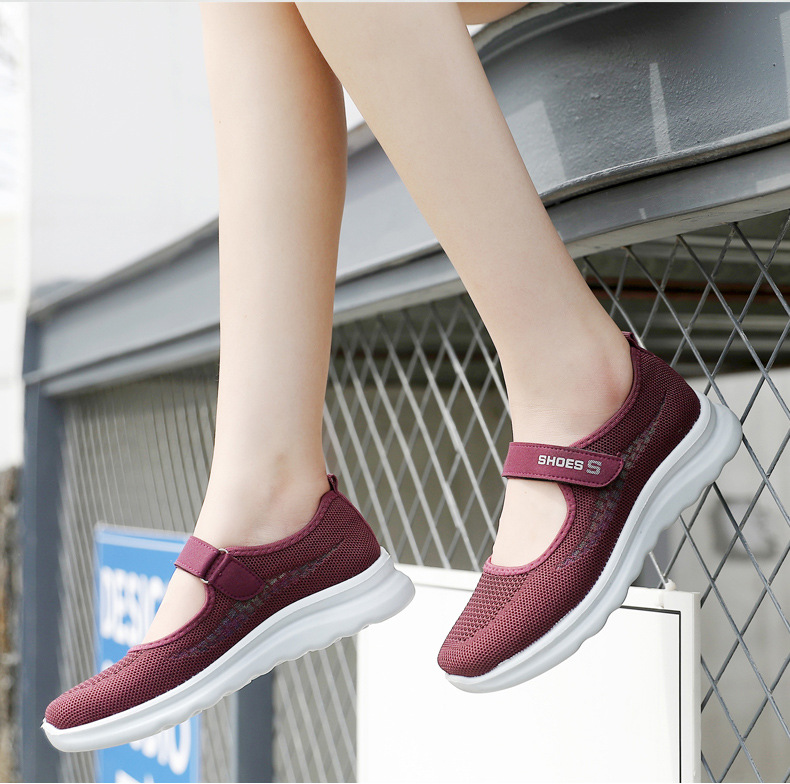 오래 된 베이징 천 신발 여성용 메쉬 편안한 통기성 중년 및 노인 어머니 걷기 신발 폴리 우레탄 소프트 솔 미끄럼 방지 캐주얼 신발