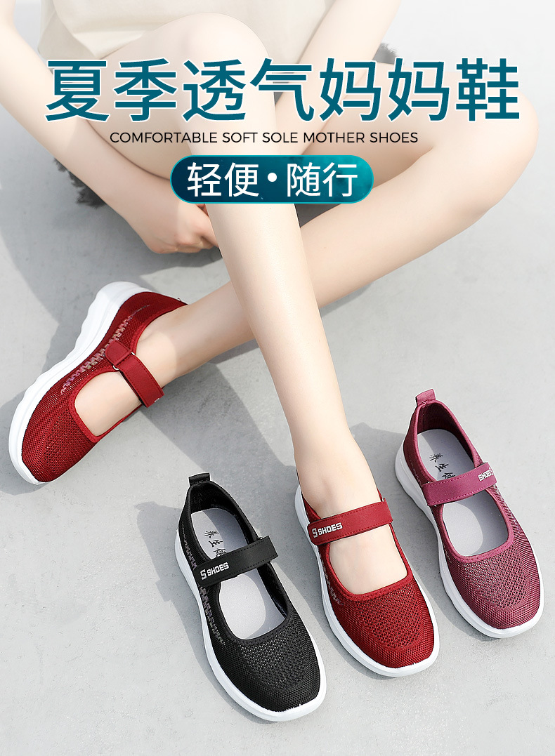 오래 된 베이징 천 신발 여성용 메쉬 편안한 통기성 중년 및 노인 어머니 걷기 신발 폴리 우레탄 소프트 솔 미끄럼 방지 캐주얼 신발스토어 가기