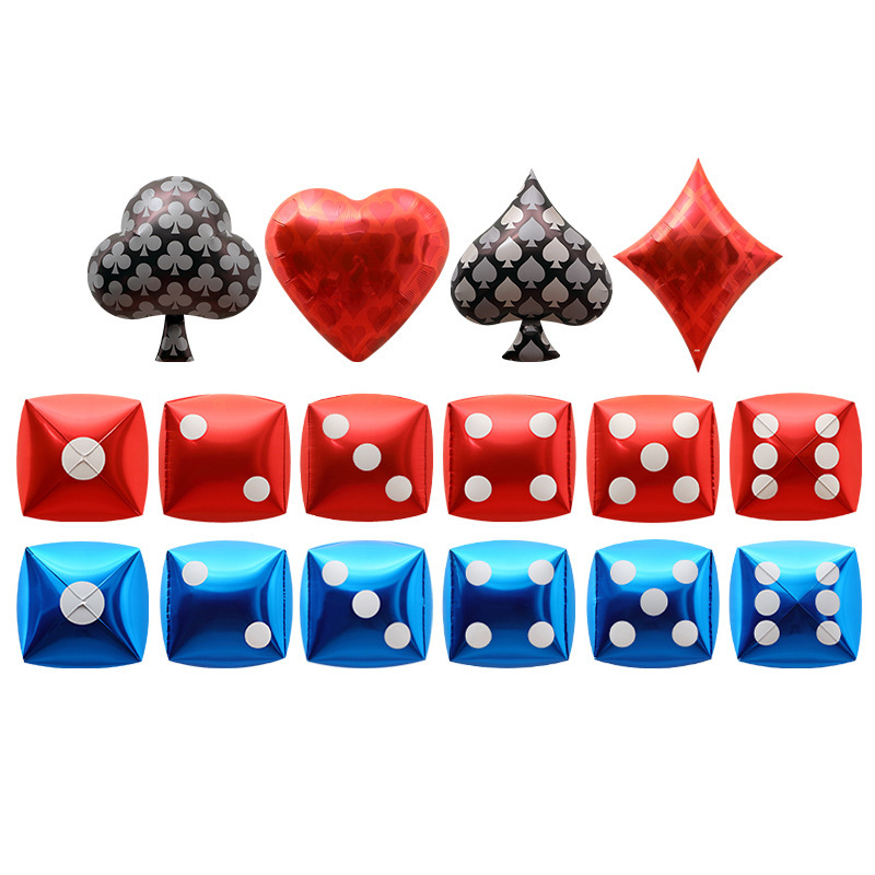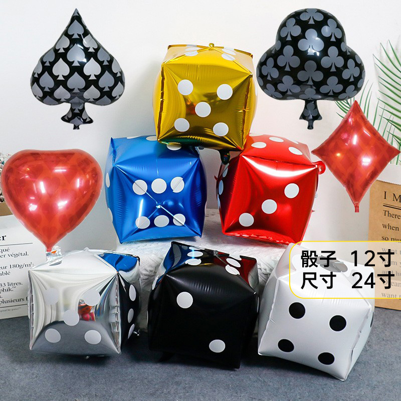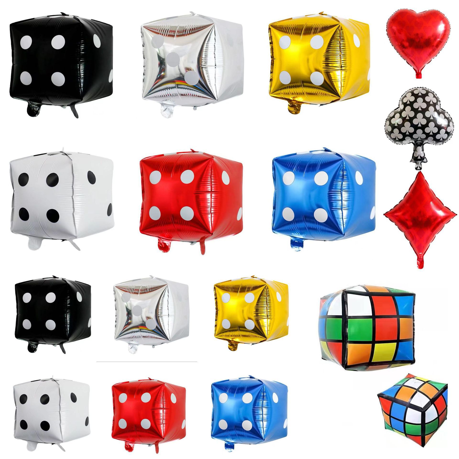 크로스 보더 12 인치 22 인치 스퀘어 6 면 주사위 알루미늄 필름 풍선 레드 복숭아 스페이드 매화 카지노 스타일 풍선스토어 가기