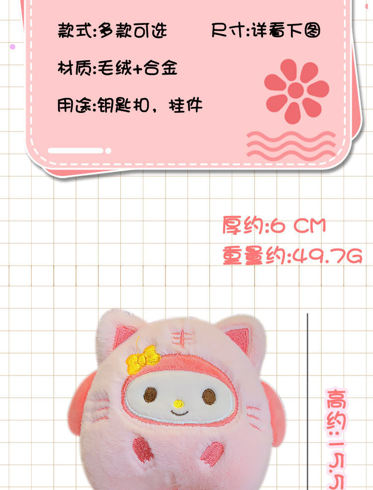 귀여운 소녀 봉제 펜던트 산리오 시리즈 쿨로 미 인형 키 체인 걸쇠 인형 장난감
