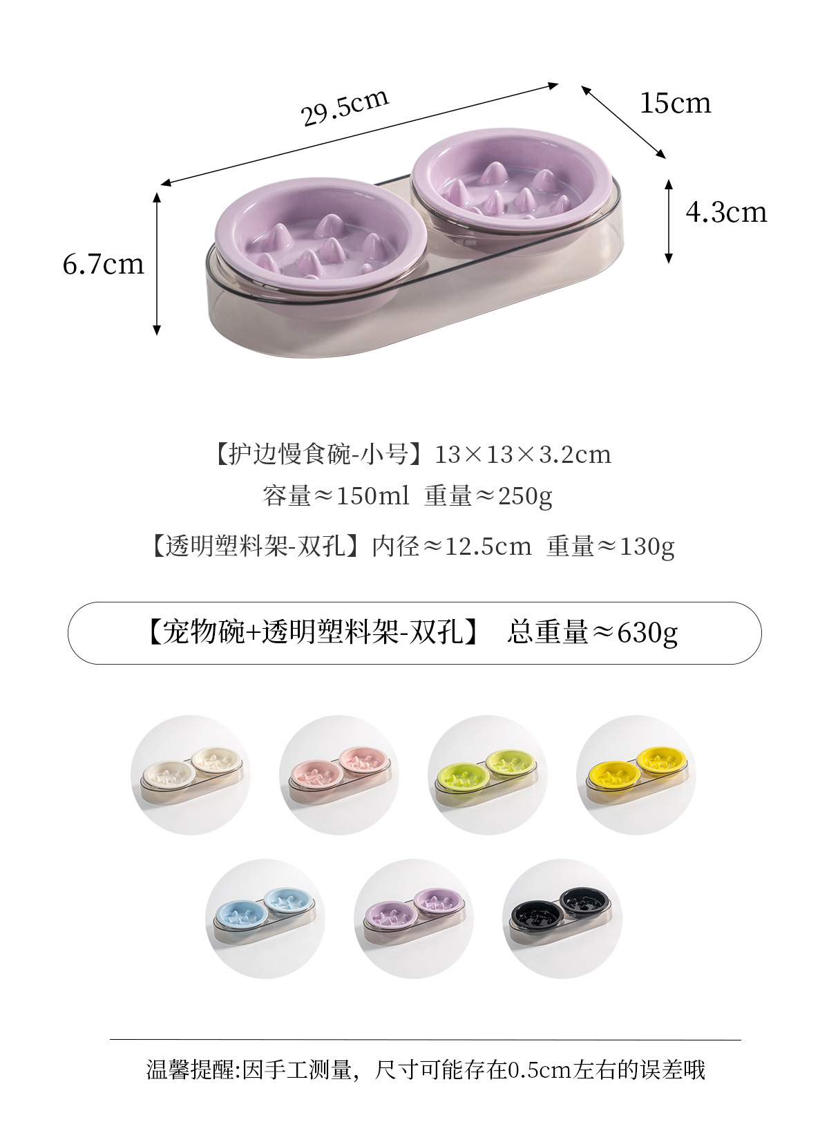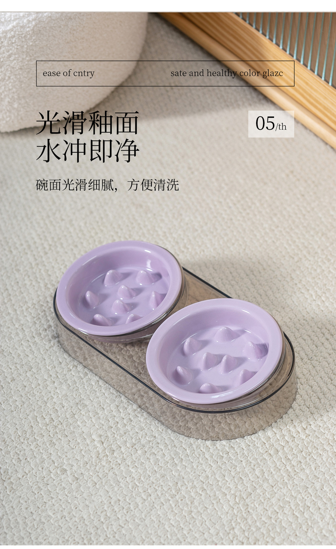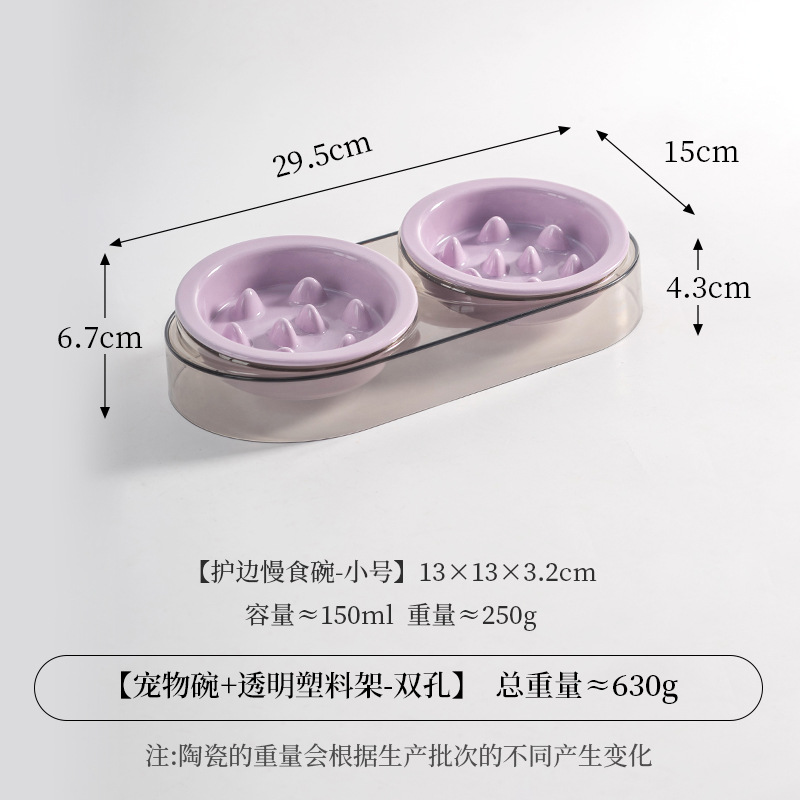 • 작은 사이즈 테두리 보호 슬로우 식기 [밝은 보라색] * 2개 + 고급 회색 플라스틱 받침대