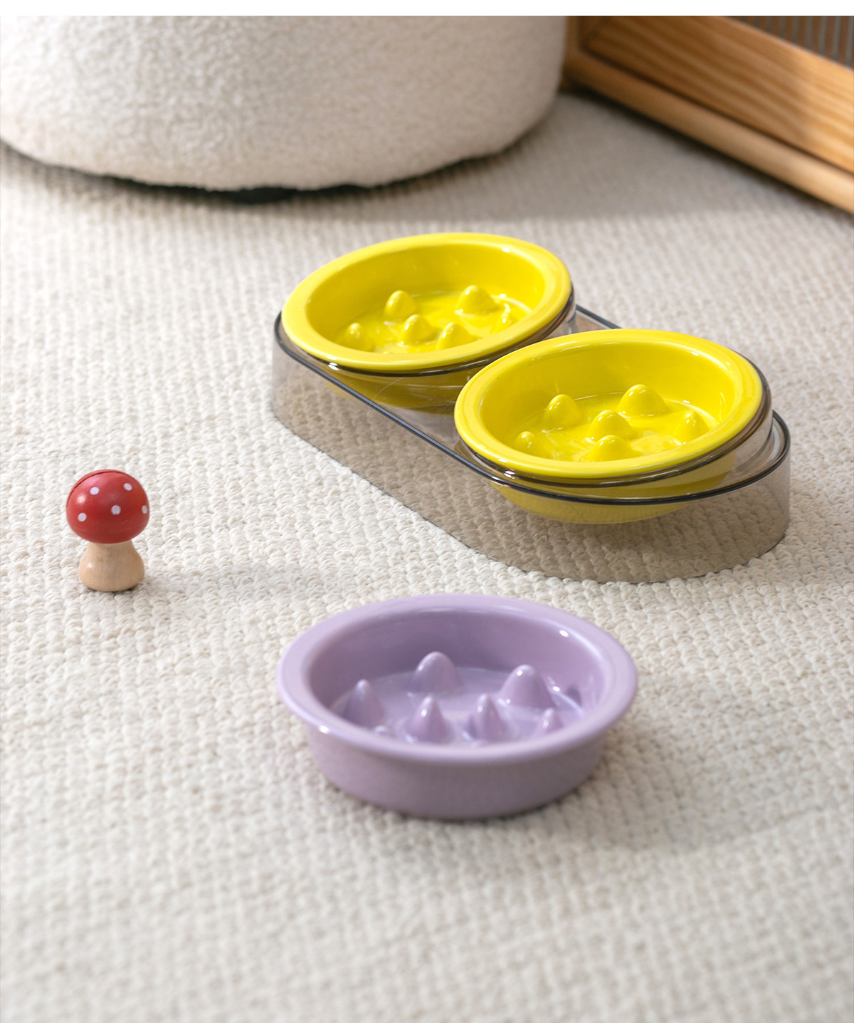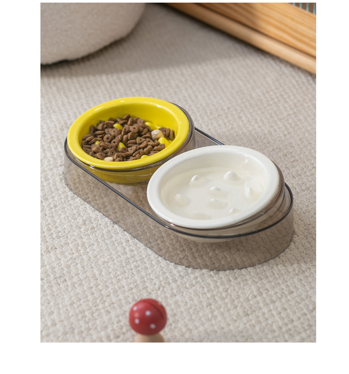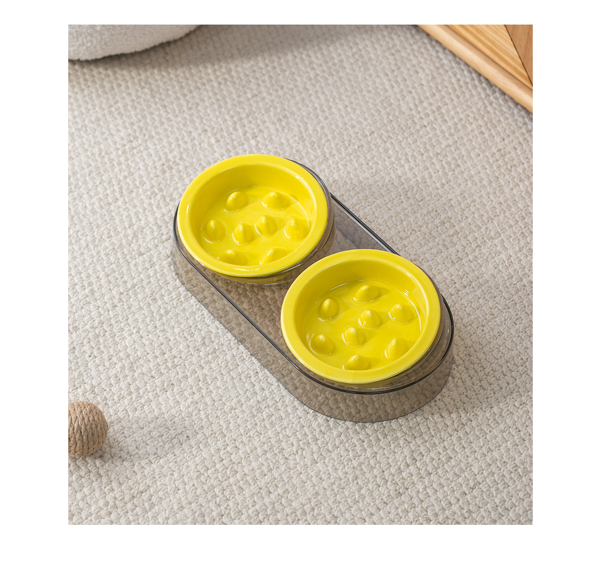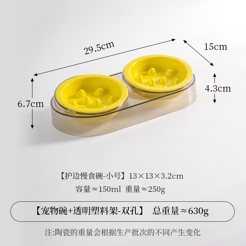• 작은 사이즈 테두리 보호 슬로우 식기 [밝은 노란색] * 2개 + 고급 회색 플라스틱 받침대