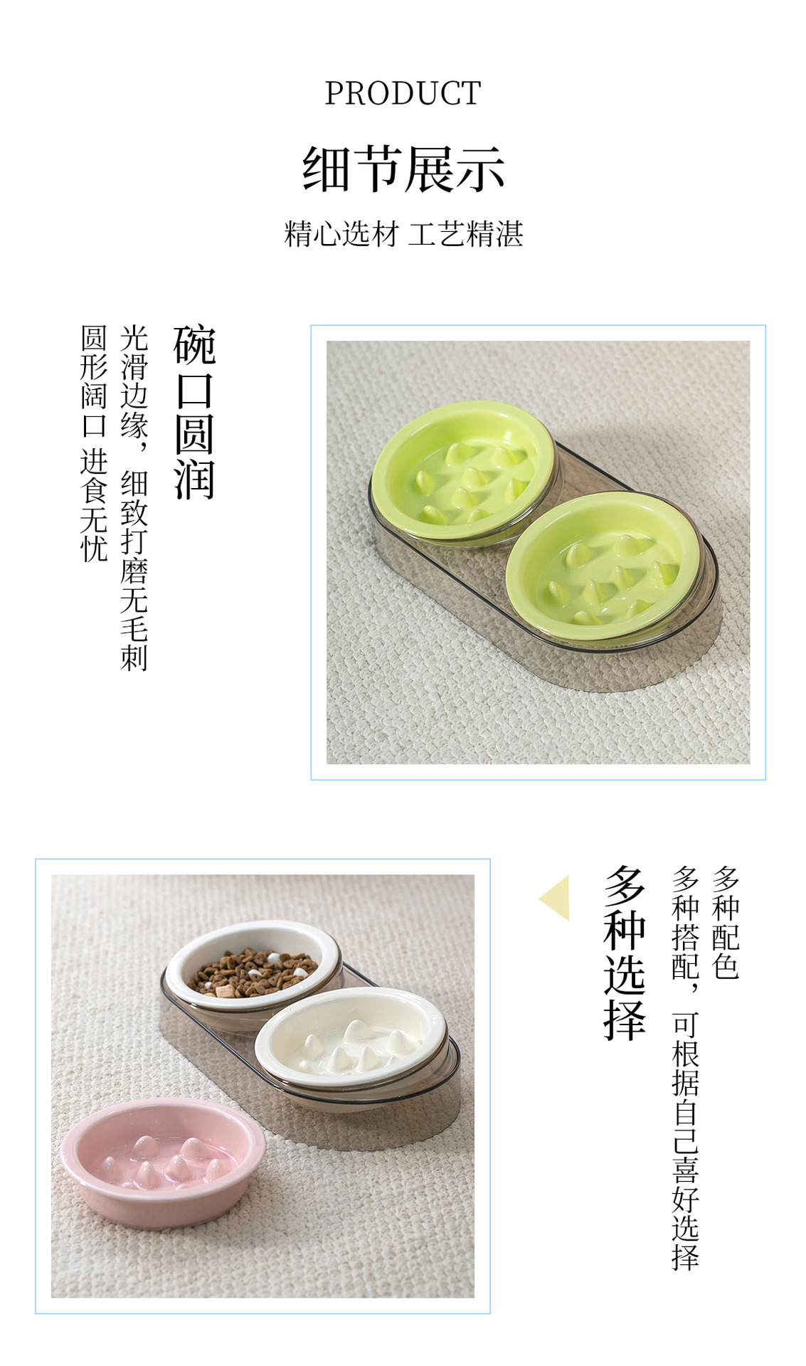 • 작은 사이즈 테두리 보호 슬로우 식기 [밝은 미색] * 2개 + 고급 회색 플라스틱 받침대