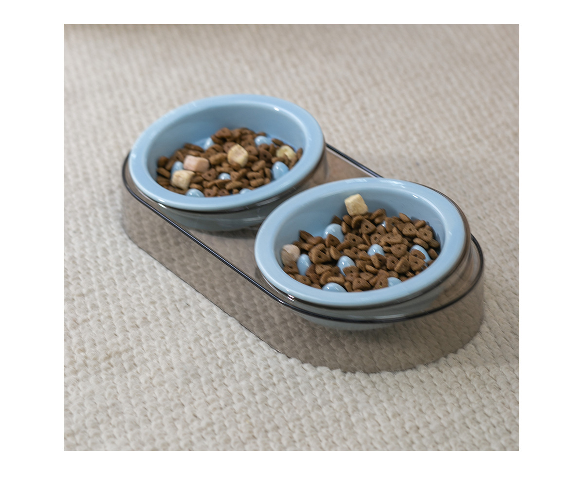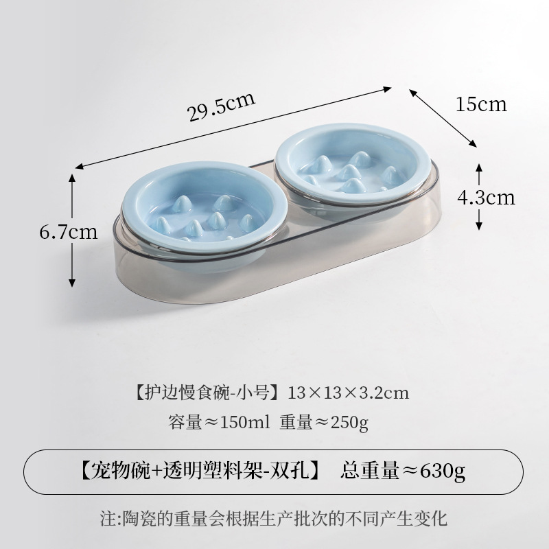 • 작은 사이즈 테두리 보호 슬로우 식기 [밝은 파란색] * 2개 + 고급 회색 플라스틱 받침대