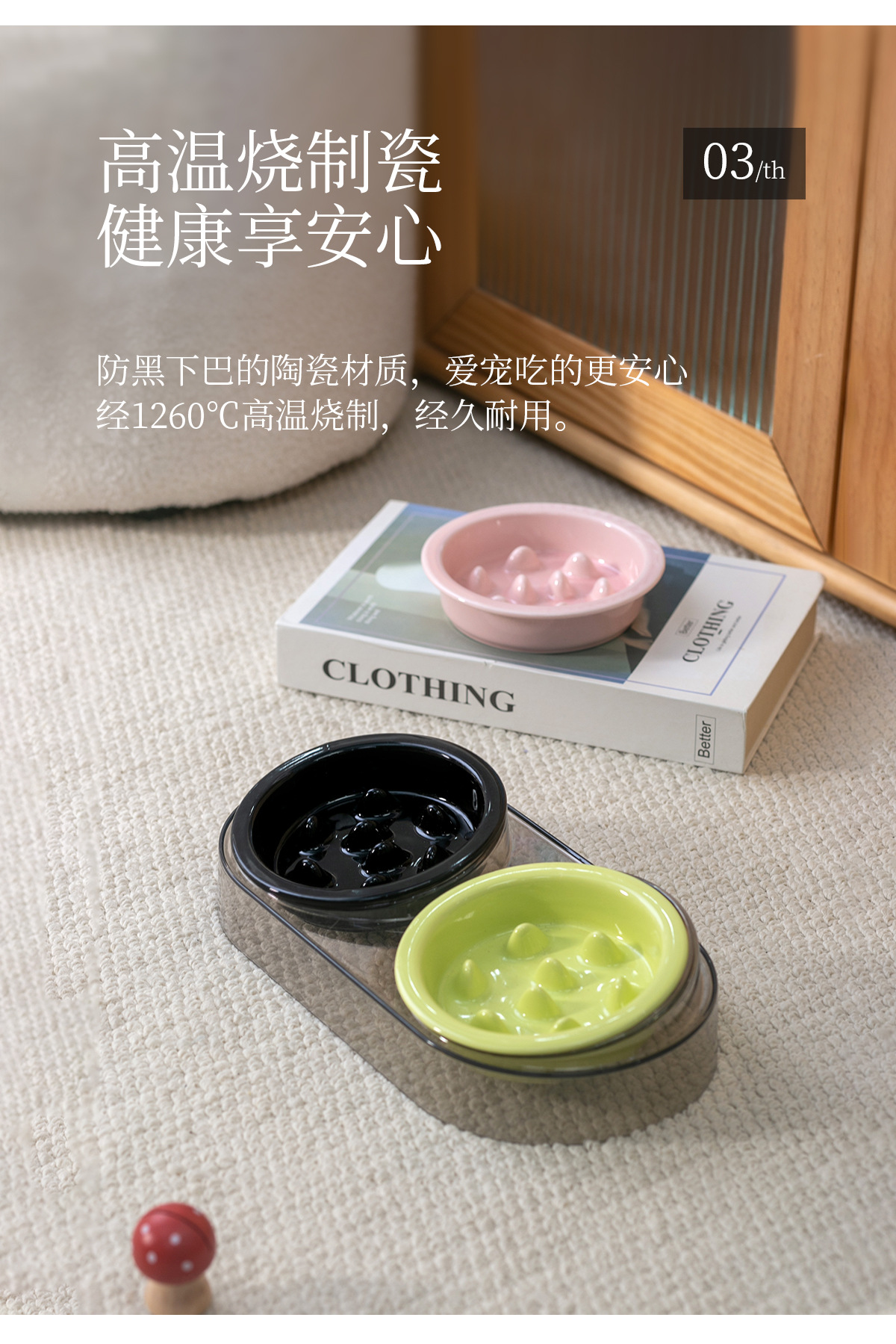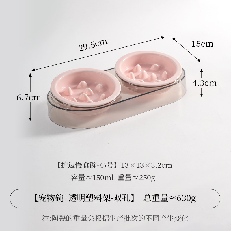 • 작은 사이즈 테두리 보호 슬로우 식기 [밝은 핑크] * 2개 + 고급 회색 플라스틱 받침대
