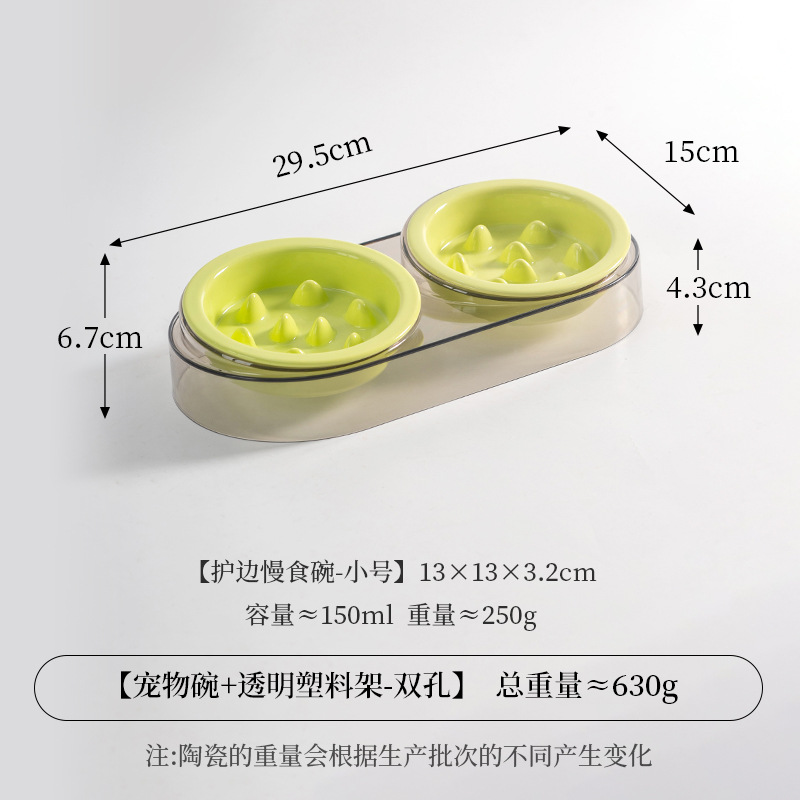 • 작은 사이즈 테두리 보호 슬로우 식기 [밝은 연두색] * 2개 + 고급 회색 플라스틱 받침대