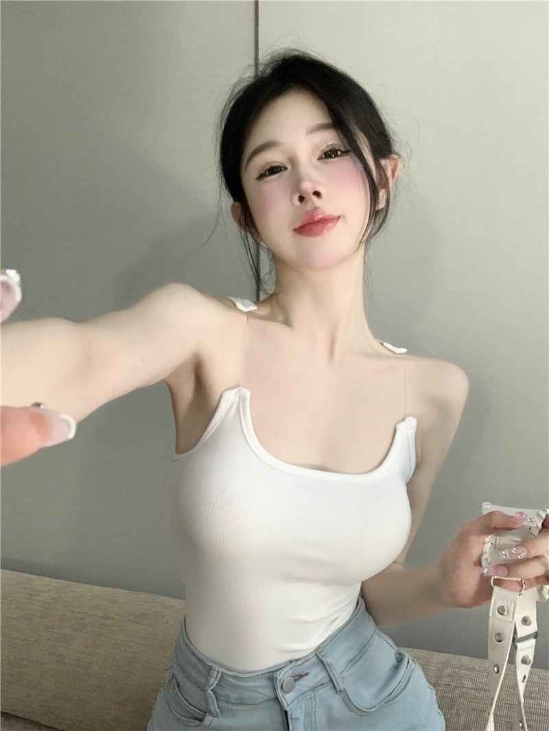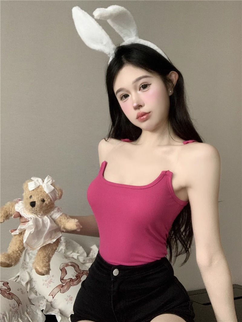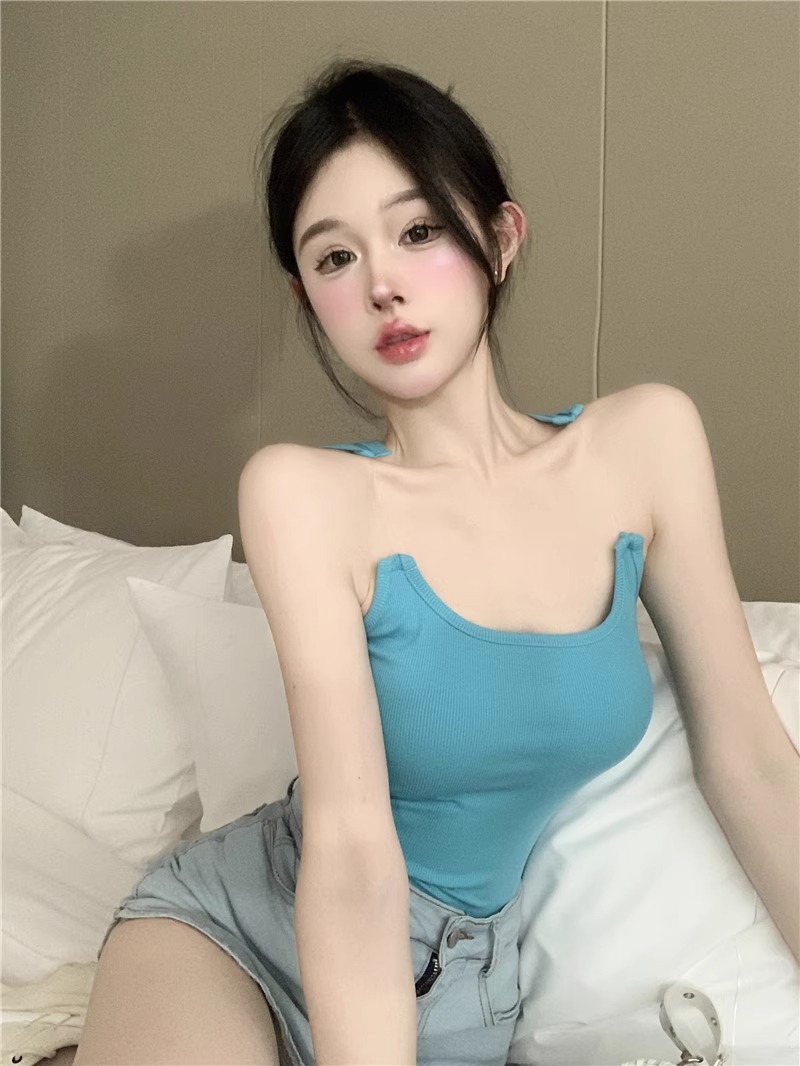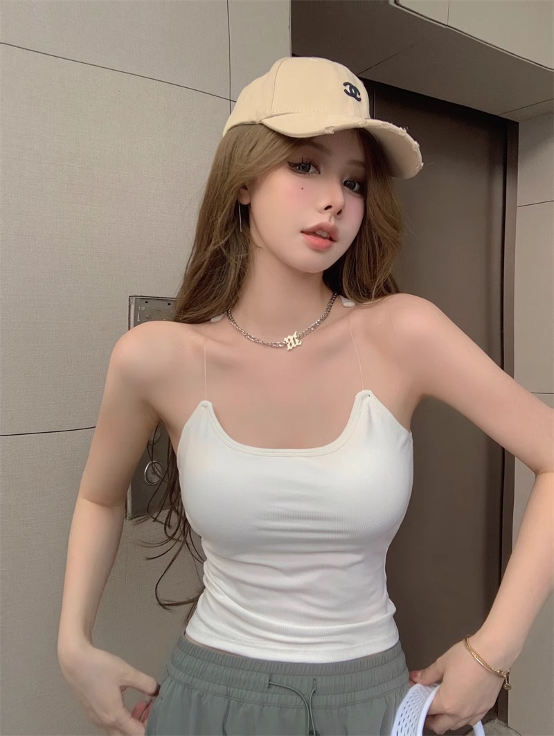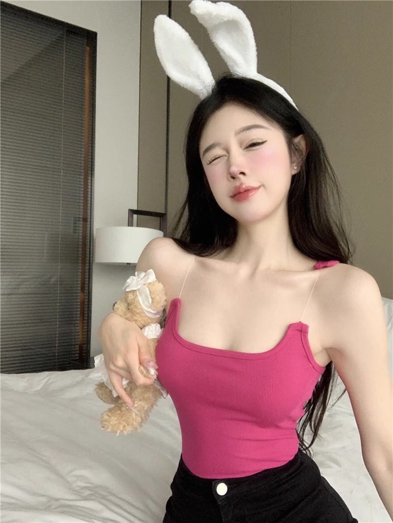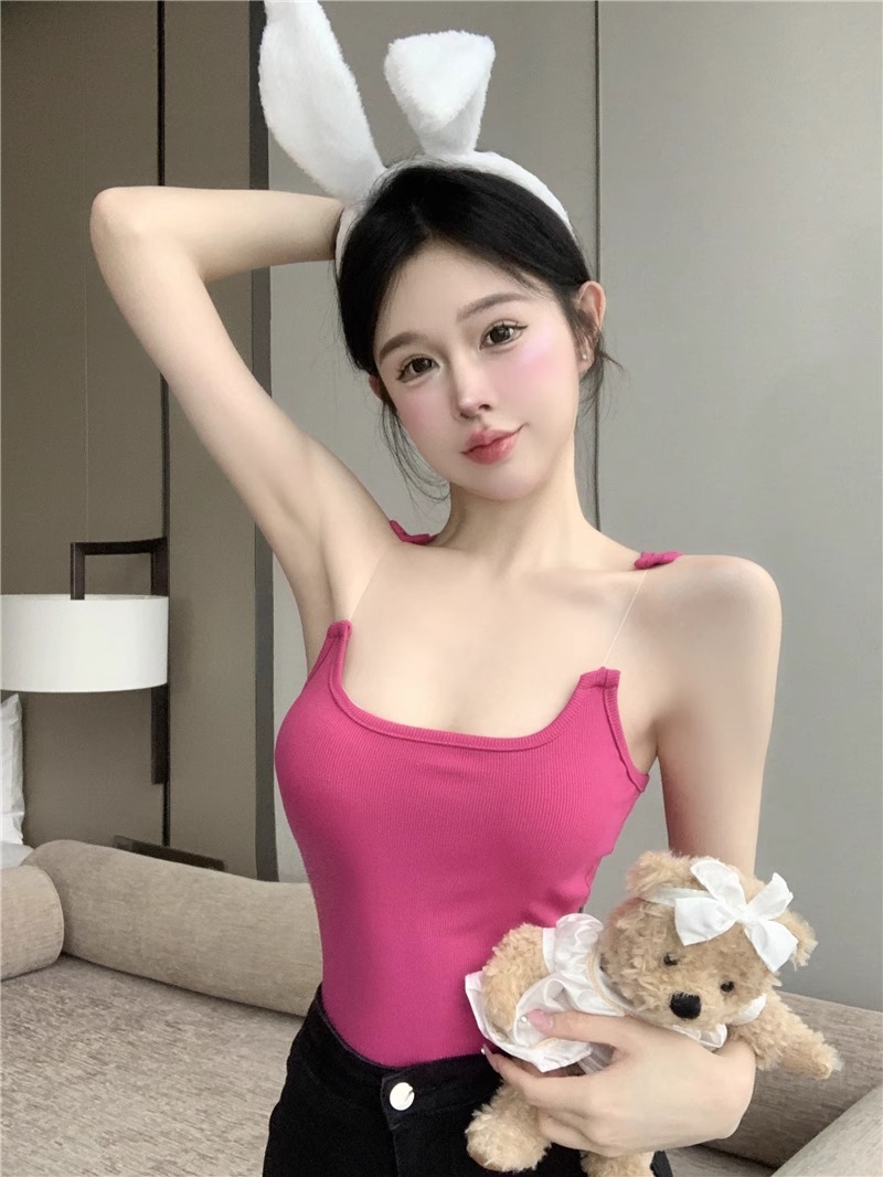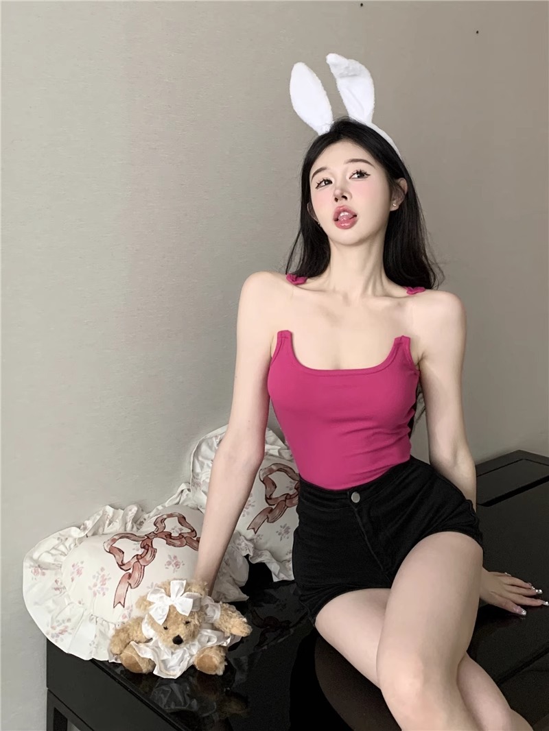 보이지 않는 카미솔 여자 봄 여름 짧은 조끼 가슴 패드 삼아 도파민 로즈 레드 달콤한 매운 재즈 탑스토어 가기
