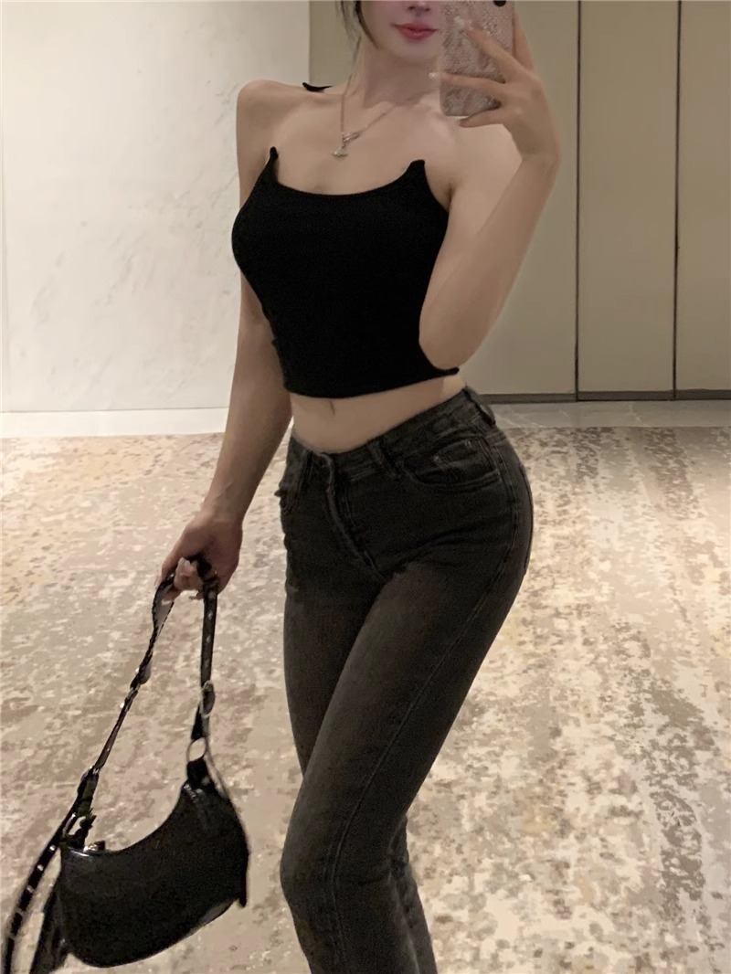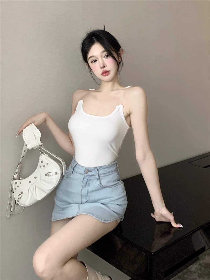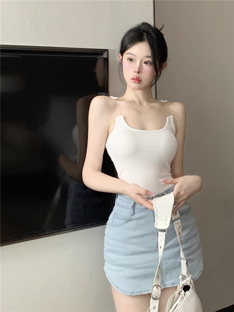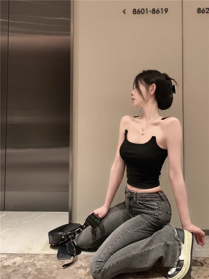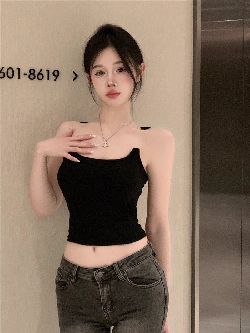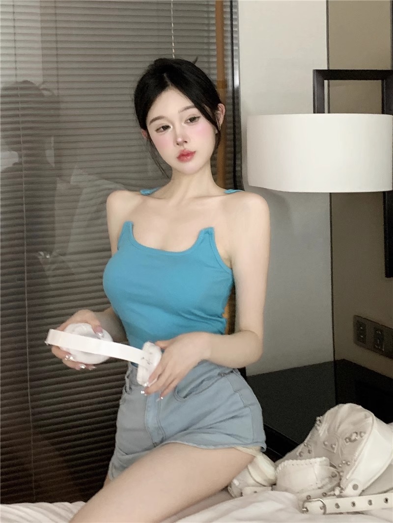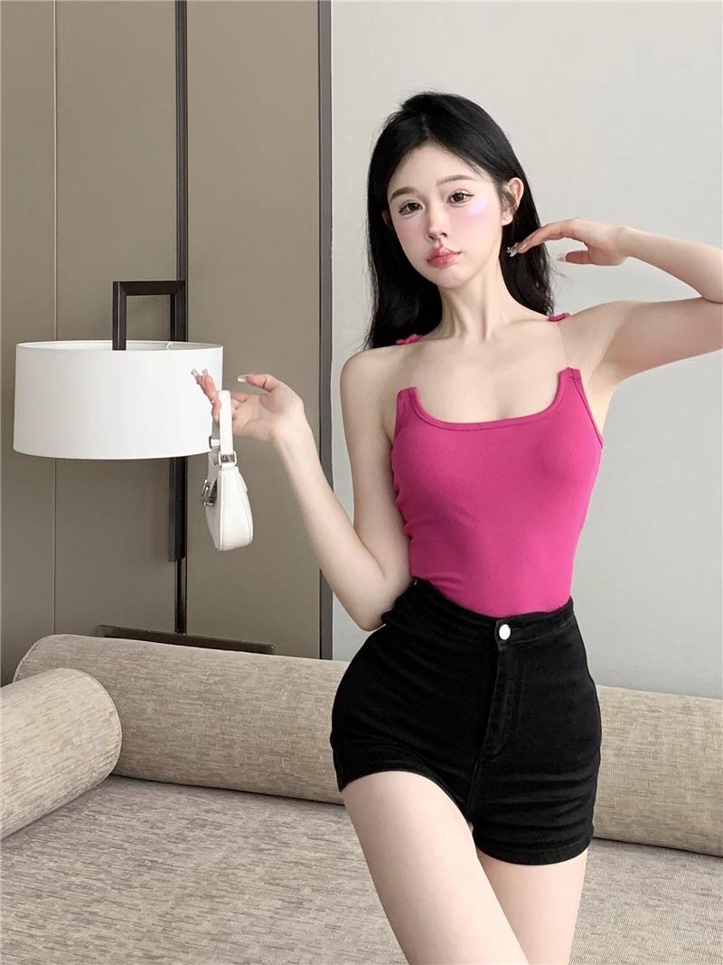 보이지 않는 카미솔 여자 봄 여름 짧은 조끼 가슴 패드 삼아 도파민 로즈 레드 달콤한 매운 재즈 탑스토어 가기