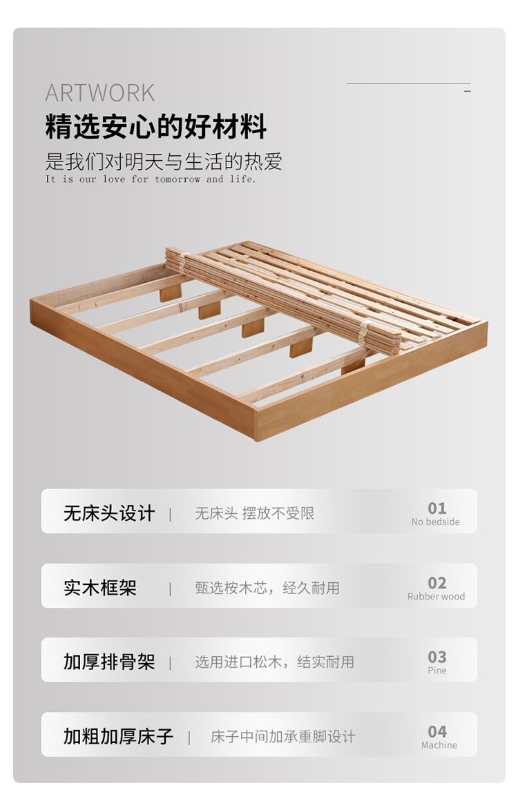 전체 단단한 나무 바닥 랙 침대 머리없는 침대 간단한 현대 홈스테이 더블 침대 캔 크기 싱글 침대스토어 가기