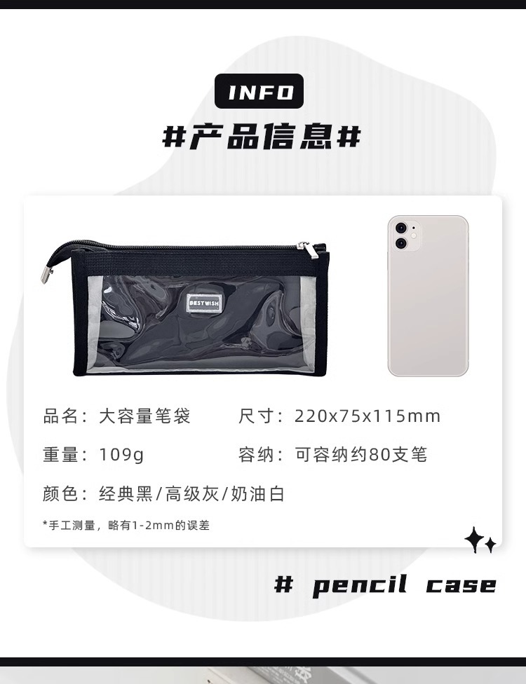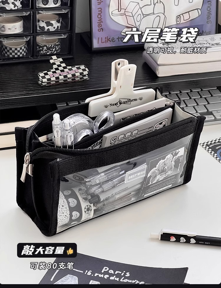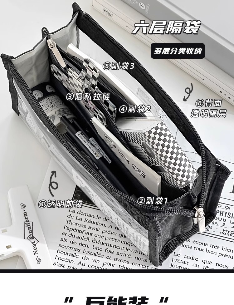 대용량 투명 연필 케이스 2 차원 푹신한 통증 가방 문구 가방 여성 초등학교 학생 디자인 센스 니쉬 연필 케이스 남성