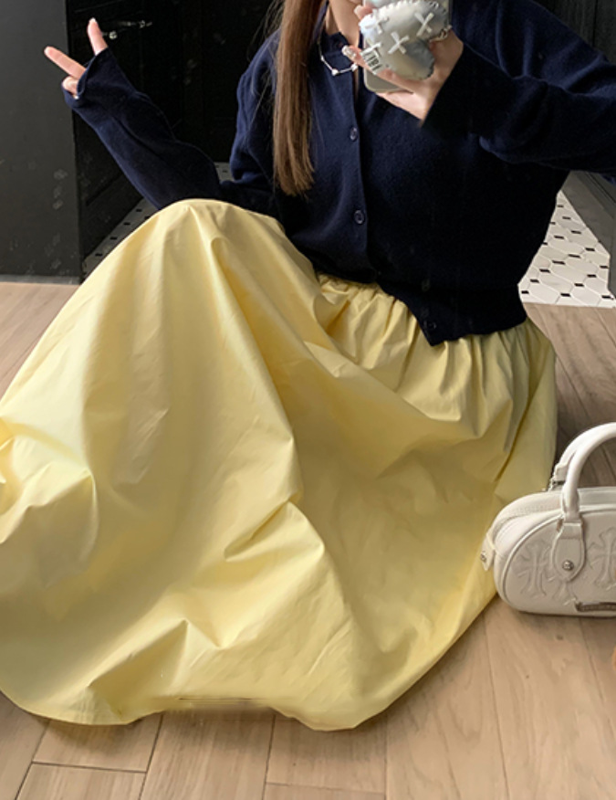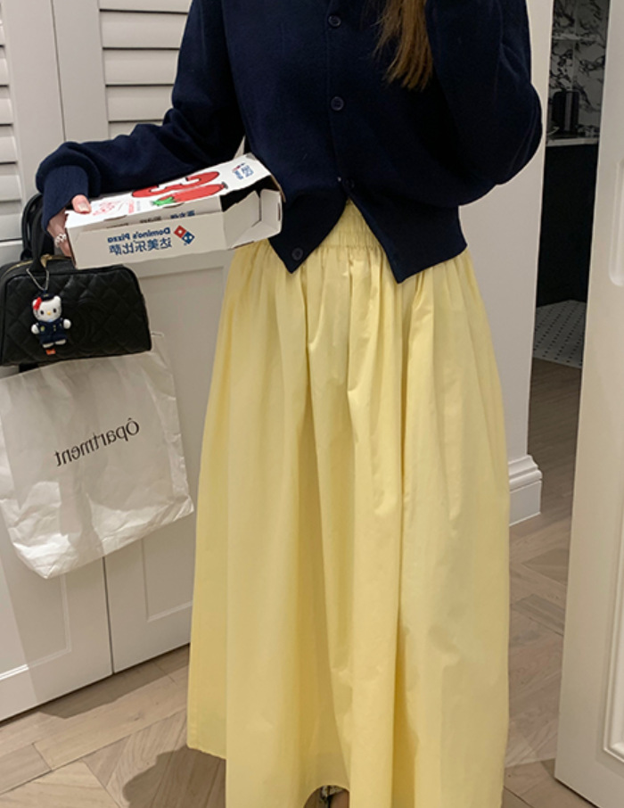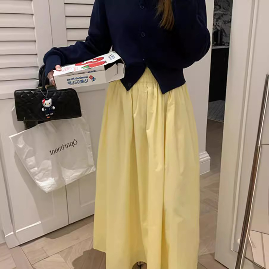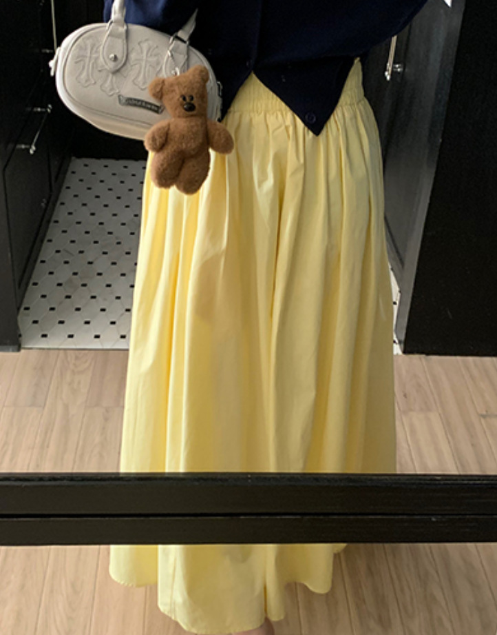 노란 치마 2024 봄과 여름 새로운 틈새 기질 부드러운 높은 허리 A 라인 슬리밍 올 매치 우산 스커트 긴 치마스토어 가기