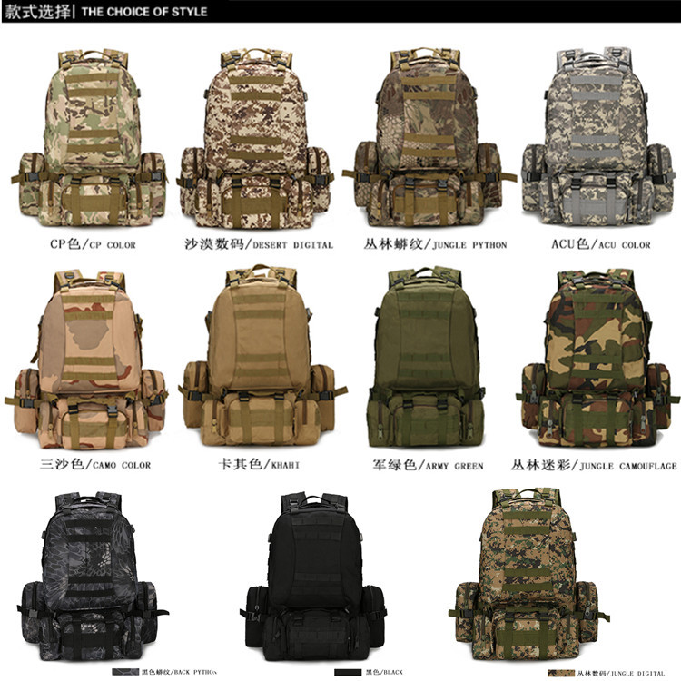 국경을 넘는 전술 배낭 세트, 야외 스포츠 등산 가방, 대용량 위장 하이킹 남녀공용 대형 배낭