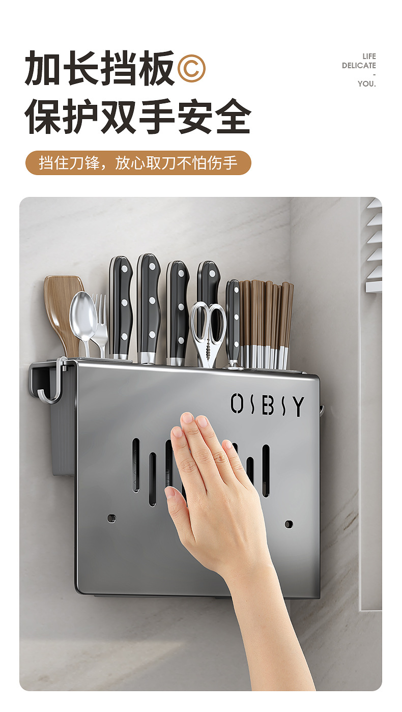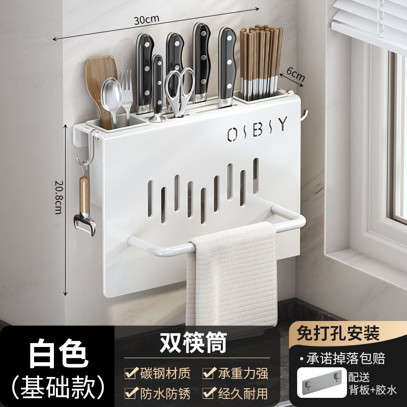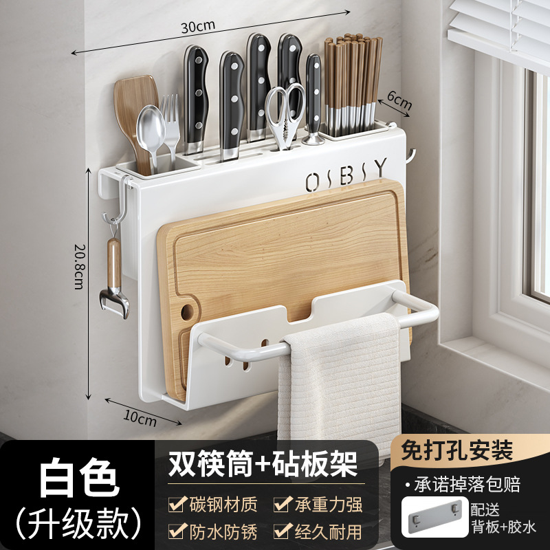 다기능 벽걸이 칼꽂이, 칼 가위 수납대, 젓가락통, 식칼 도마 일체형 수납선반, 주방 필수품