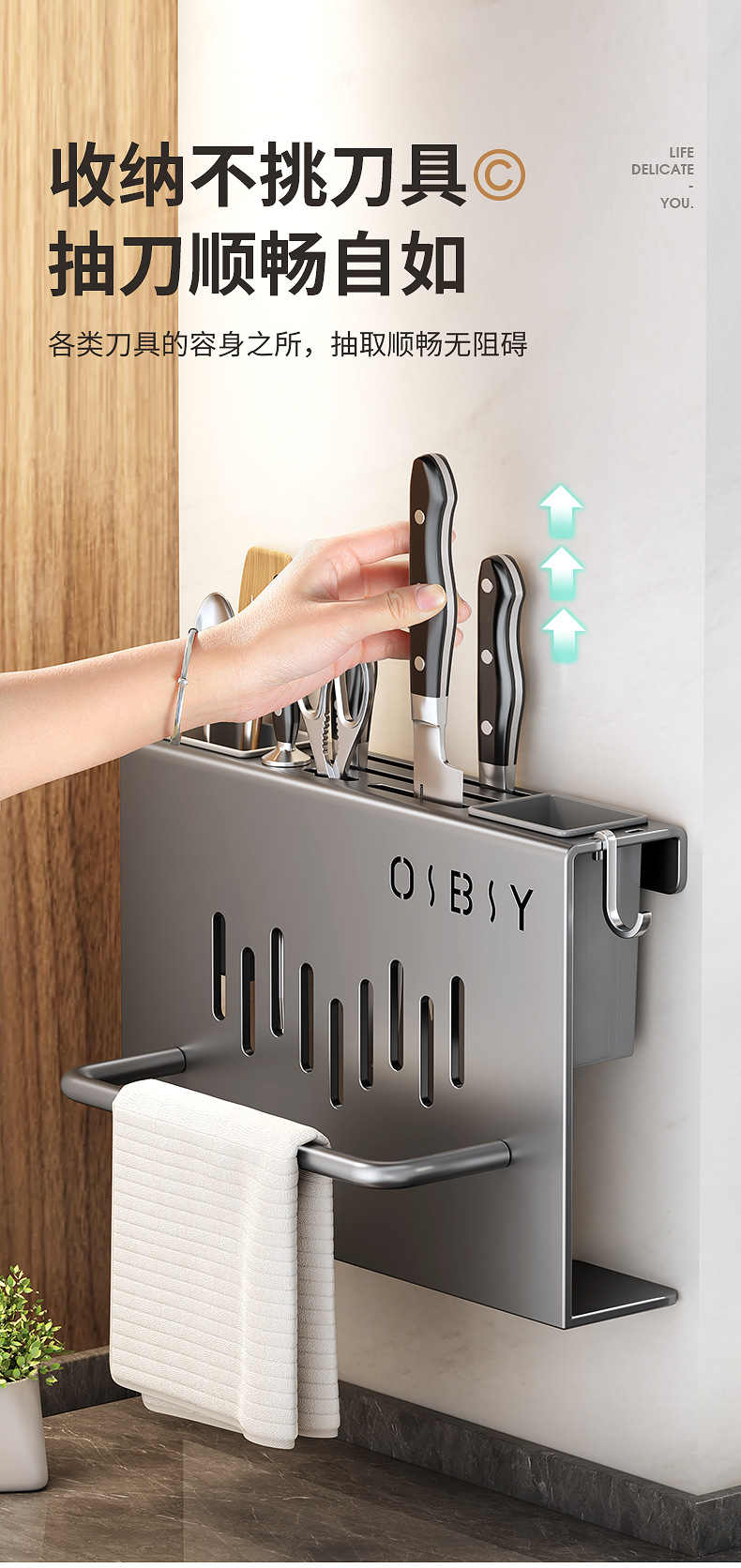 다기능 벽걸이 칼꽂이, 칼 가위 수납대, 젓가락통, 식칼 도마 일체형 수납선반, 주방 필수품스토어 가기