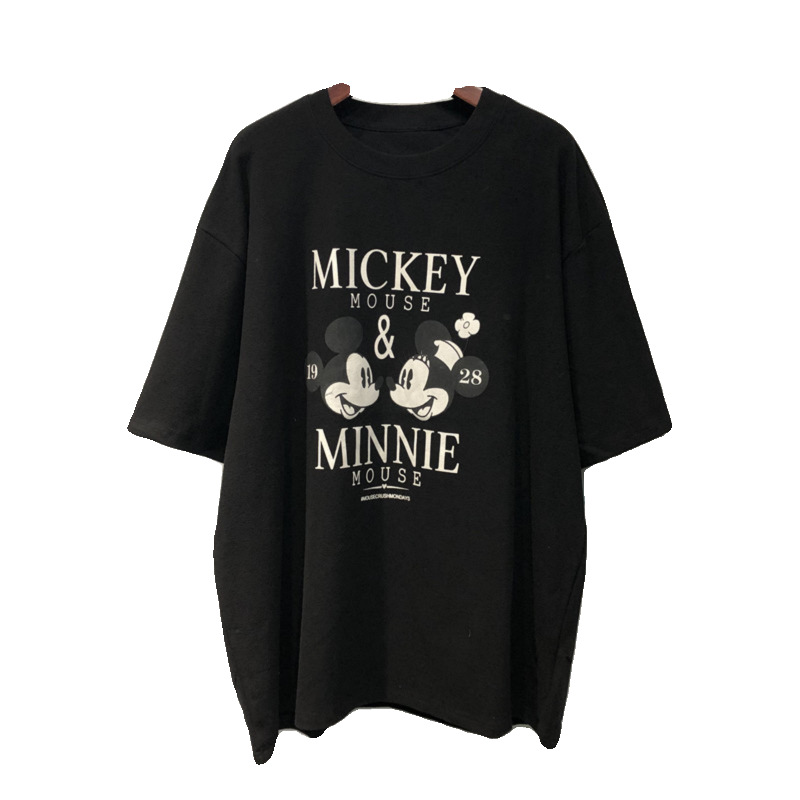 한국 얼짱 동대문 2025 여름 신작 만화 프린트 루즈한 대형 순면 반팔 티셔츠 여성용스토어 가기