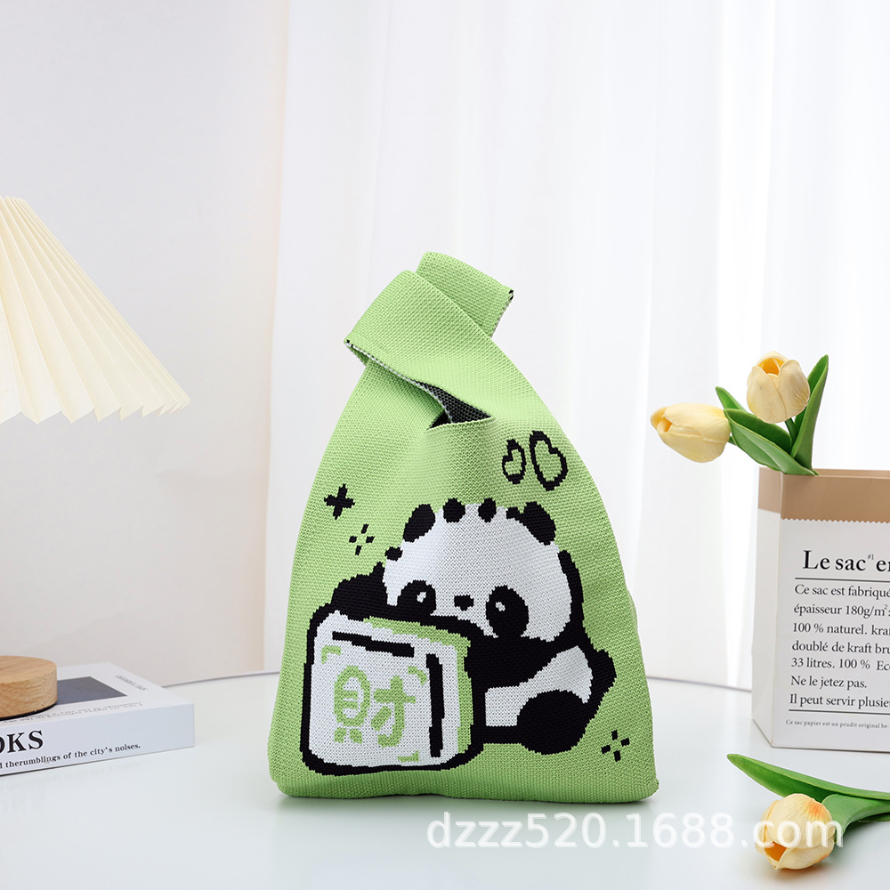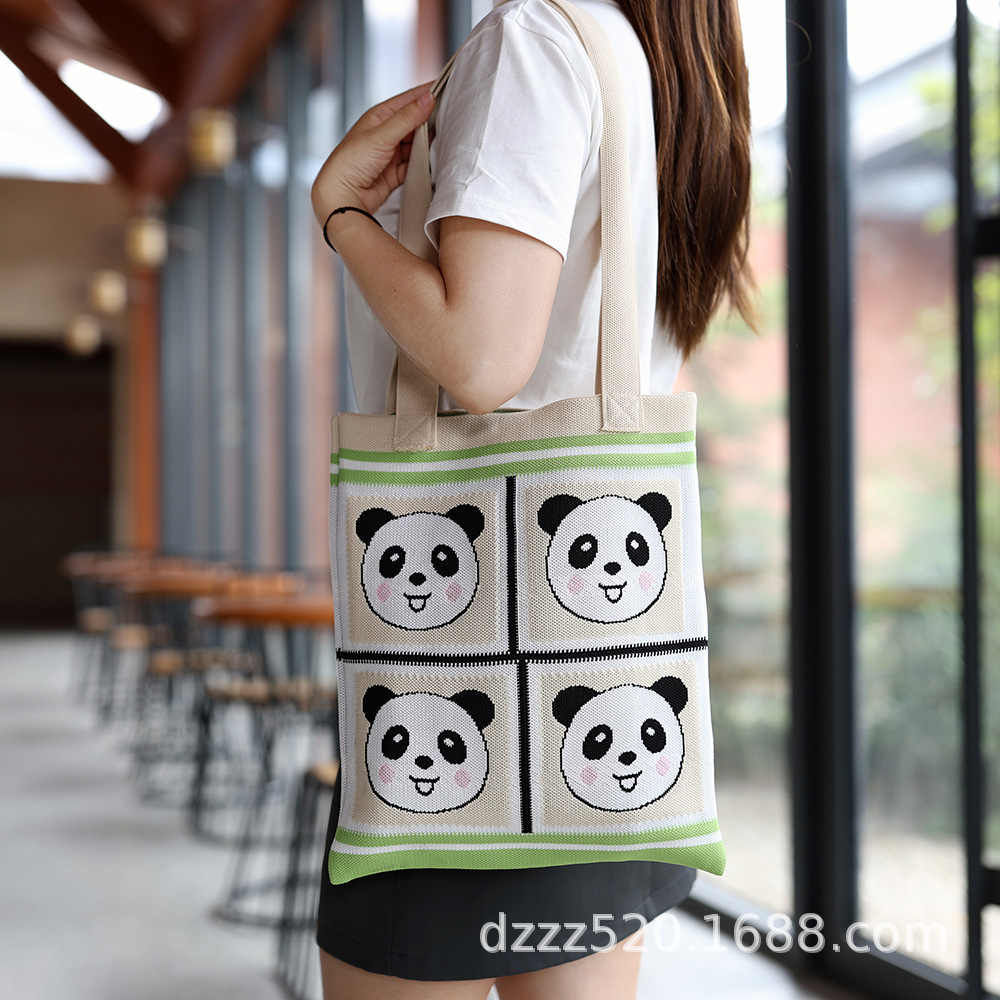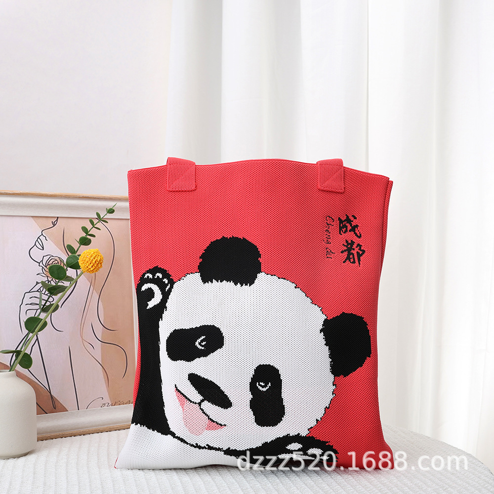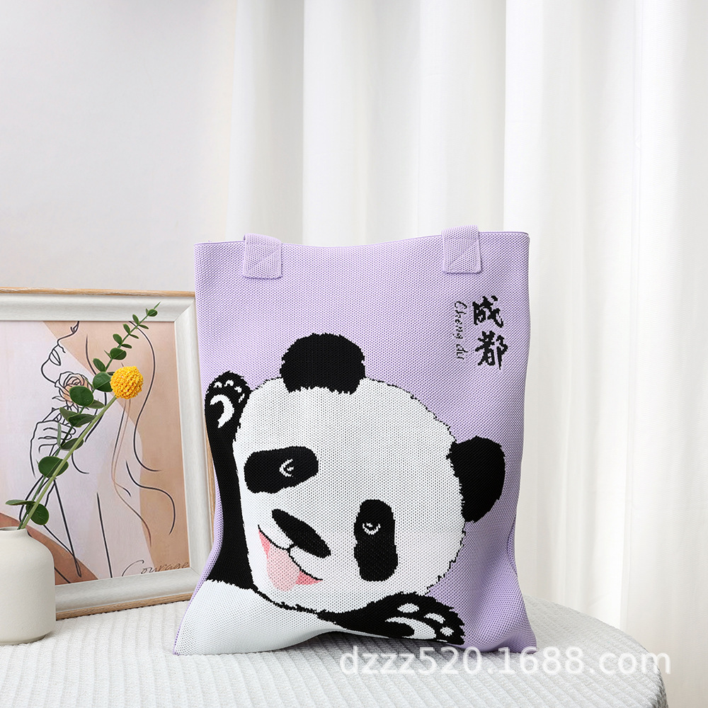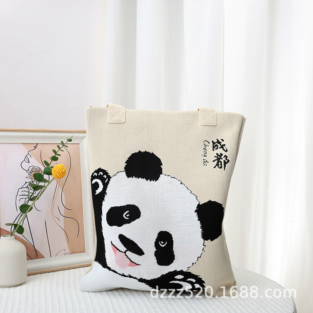 Chengdu Panda Grandpa와 동일한 스타일의 귀여운 폴리에스터 휴대용 니트 겨드랑이 가방, 숄더백, 핸드백의 공장 직매스토어 가기